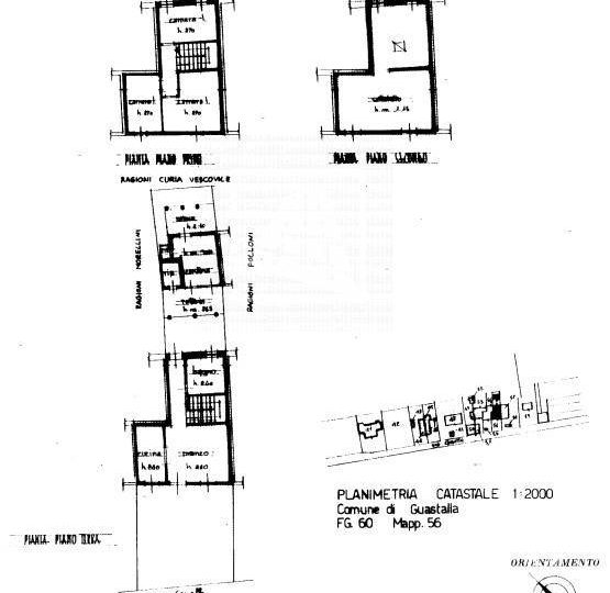 L’abitazione è composta da: sala da pranzo, cucina, corridoio, bagno, due tettoie e basso servizio al piano terra; scala di collegamento al primo piano composto da: disimpegno e tre camere da letto; al secondo piano è invece presente un sottotetto accessibile con botola.