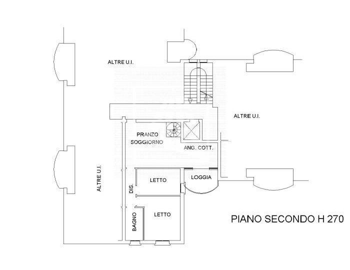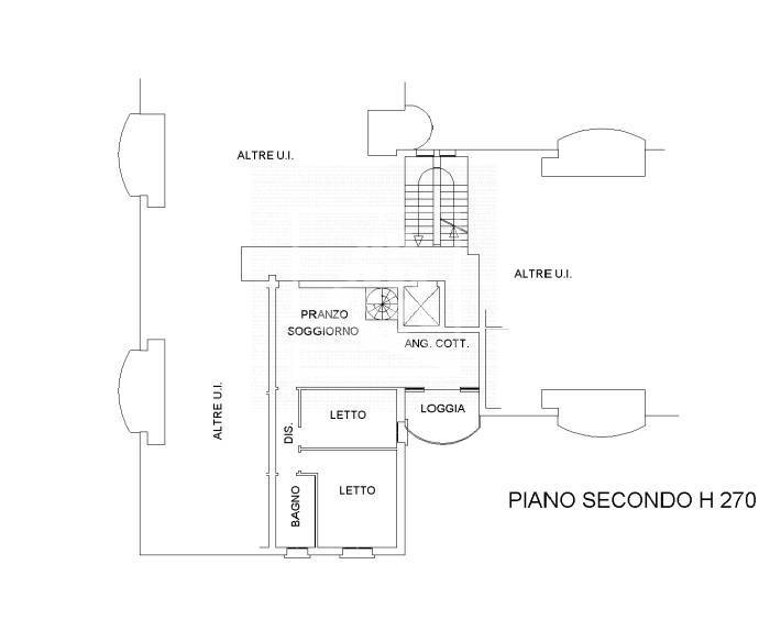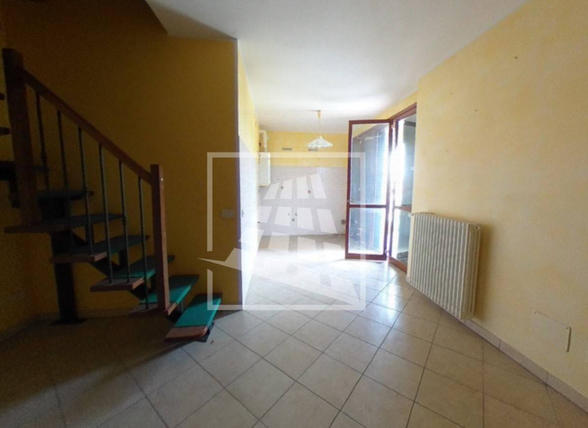 Appartamento su due livelli ( collegati tra loro da una scala interna) al secondo piano servito da ascensore , così composto : soggiorno con angolo cottura con balcone accessibile attraverso una ampia vetrata, due camere da letto ed un bagno.