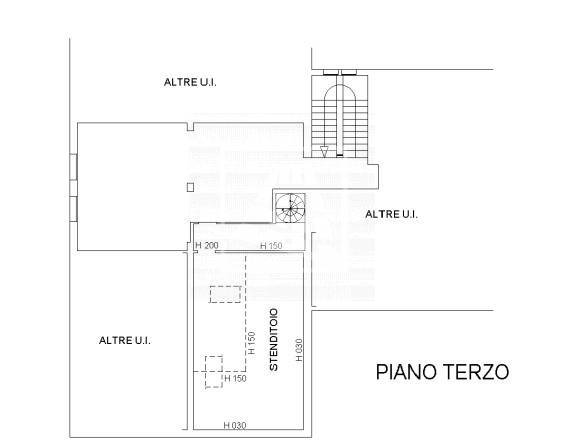 Al piano terzo invece l’appartamento è costituito da due locali sottotetto con altezza media di circa 120/130 cm ed un locale attrezzato a servizio igienico anch’esso con altezza media di circa 120/130 cm.