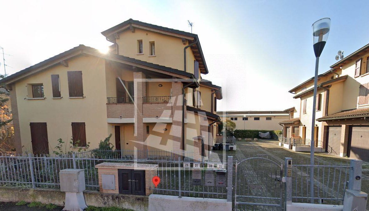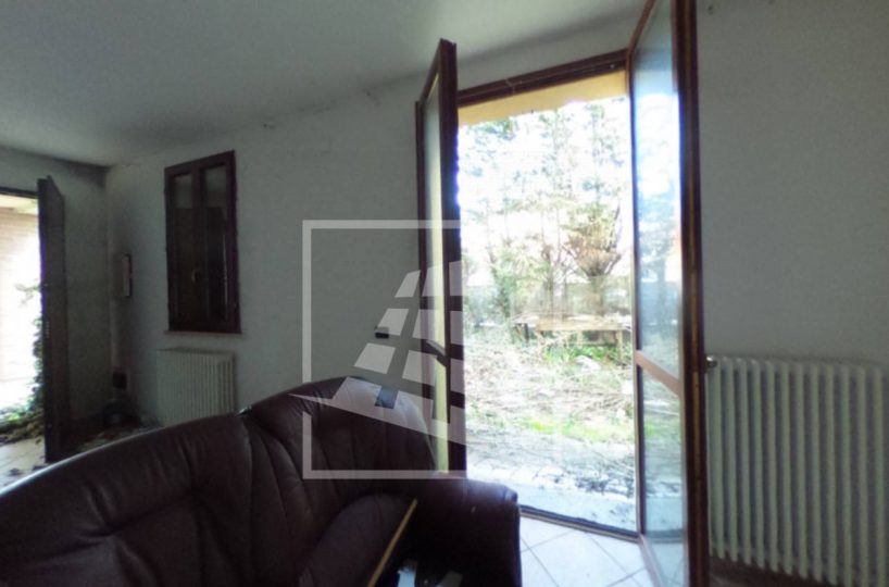 Appartamento disposto su due livelli, con area cortiliva in esclusiva proprietà , composto al piano terra da : monolocale, bagno, cantina, disimpegno, zona cottura, due portici, autorimessa di 18mq. e posto auto scoperto di 25 mq.;