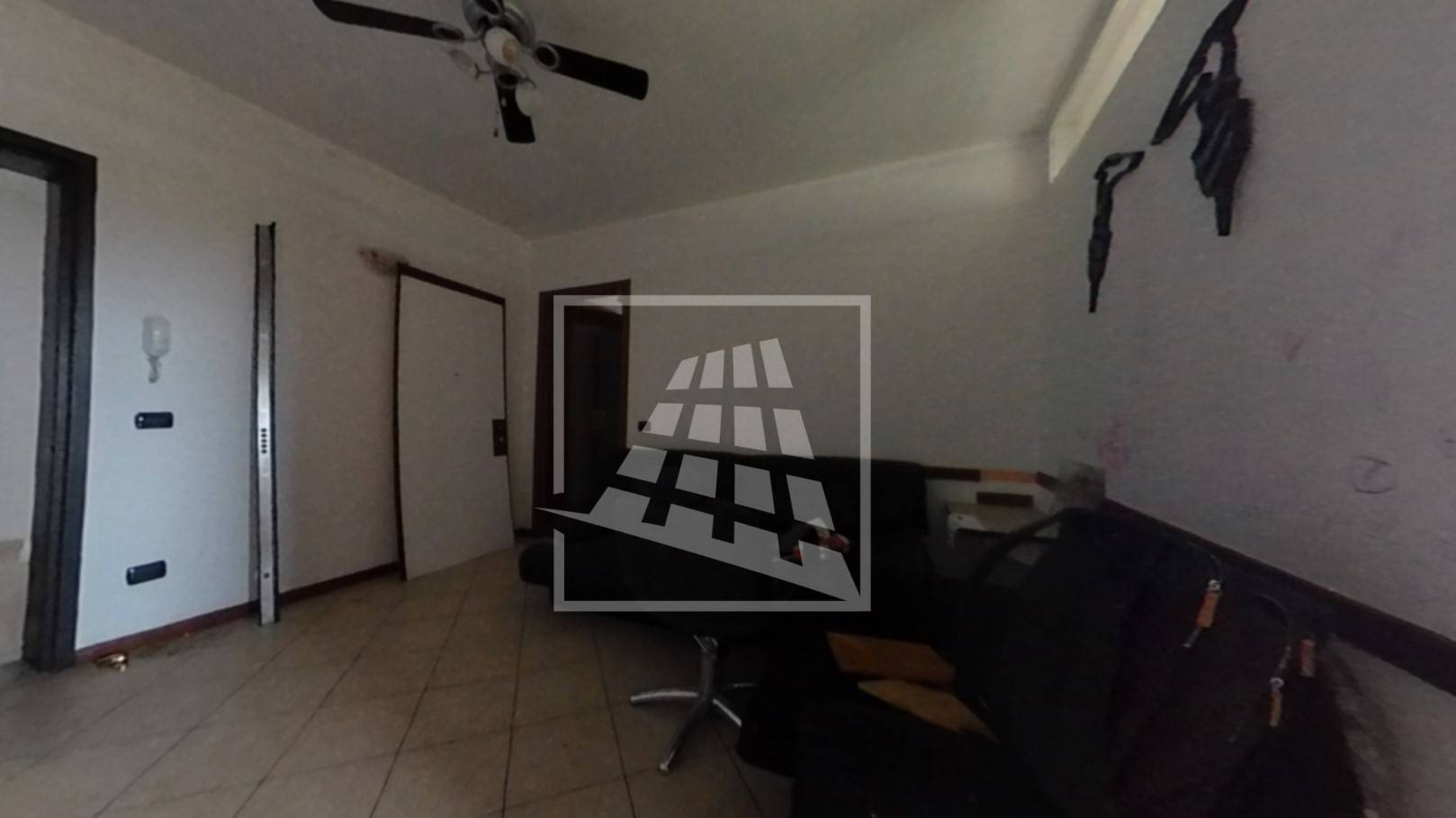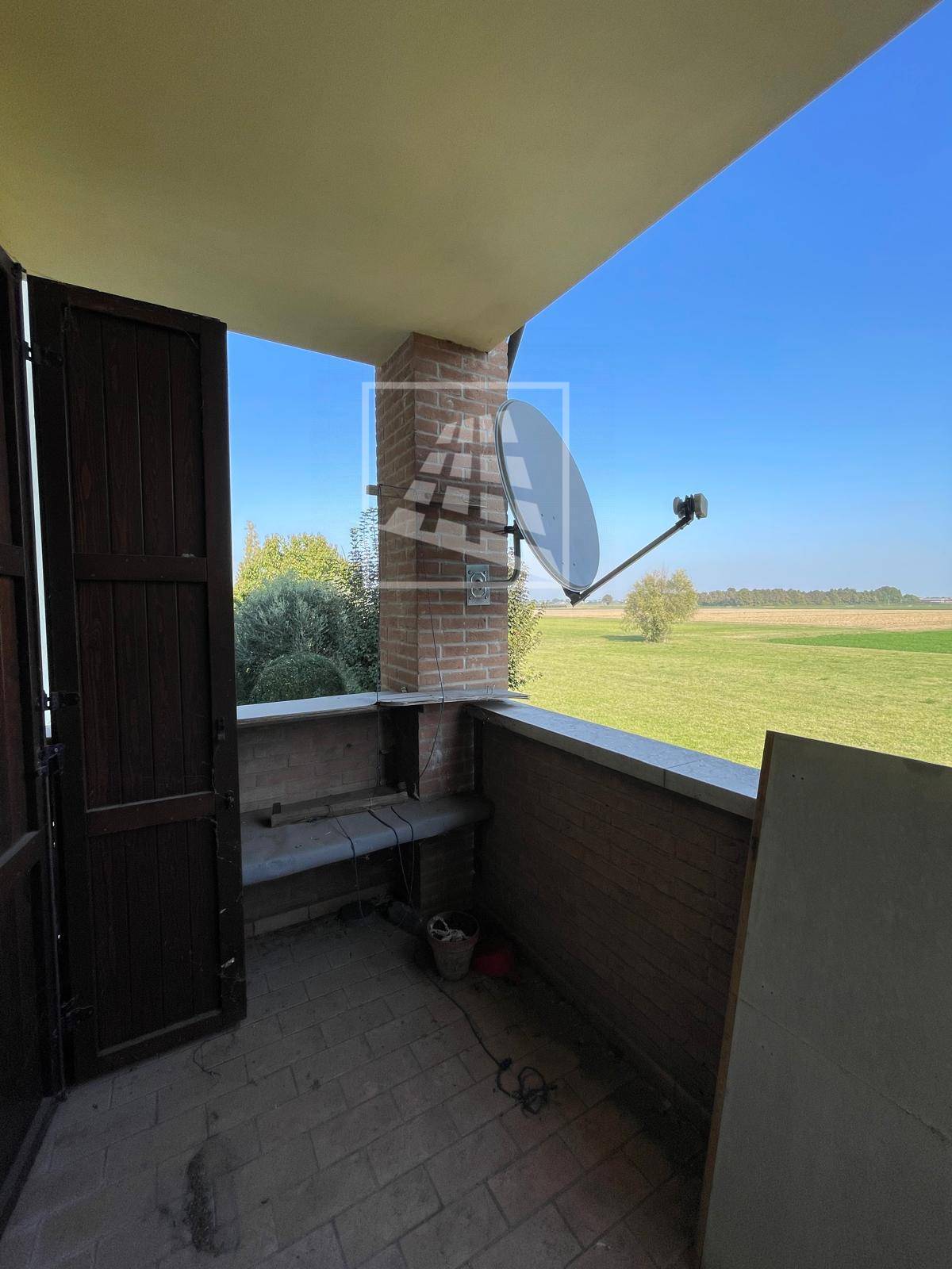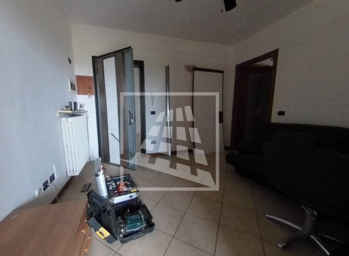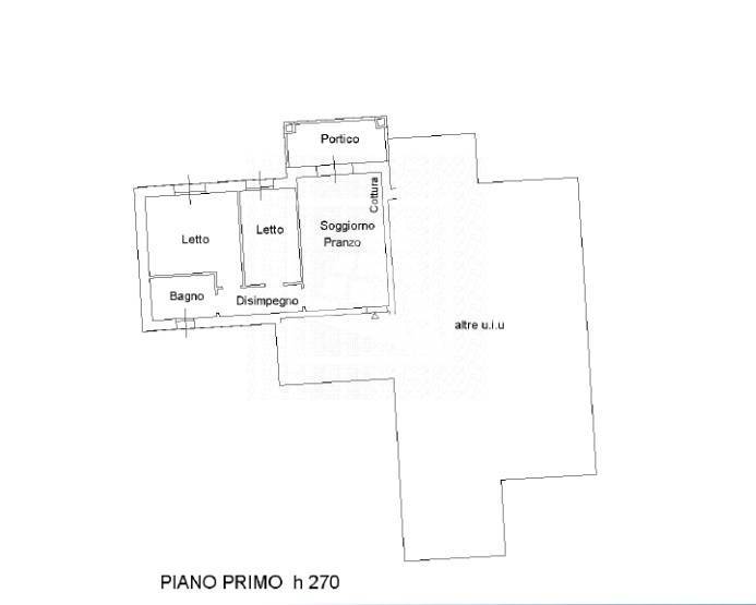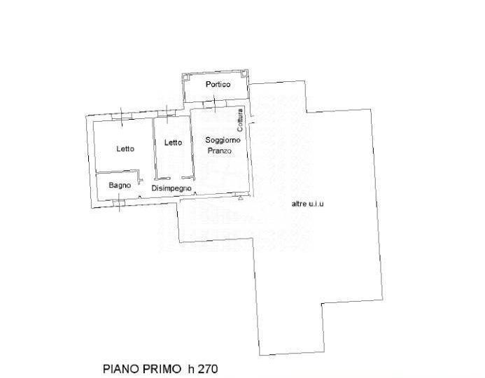 ingresso su sala pranzo-soggiorno con angolo cottura, loggia coperta, disimpegno, due camere da letto e bagno finestrato.