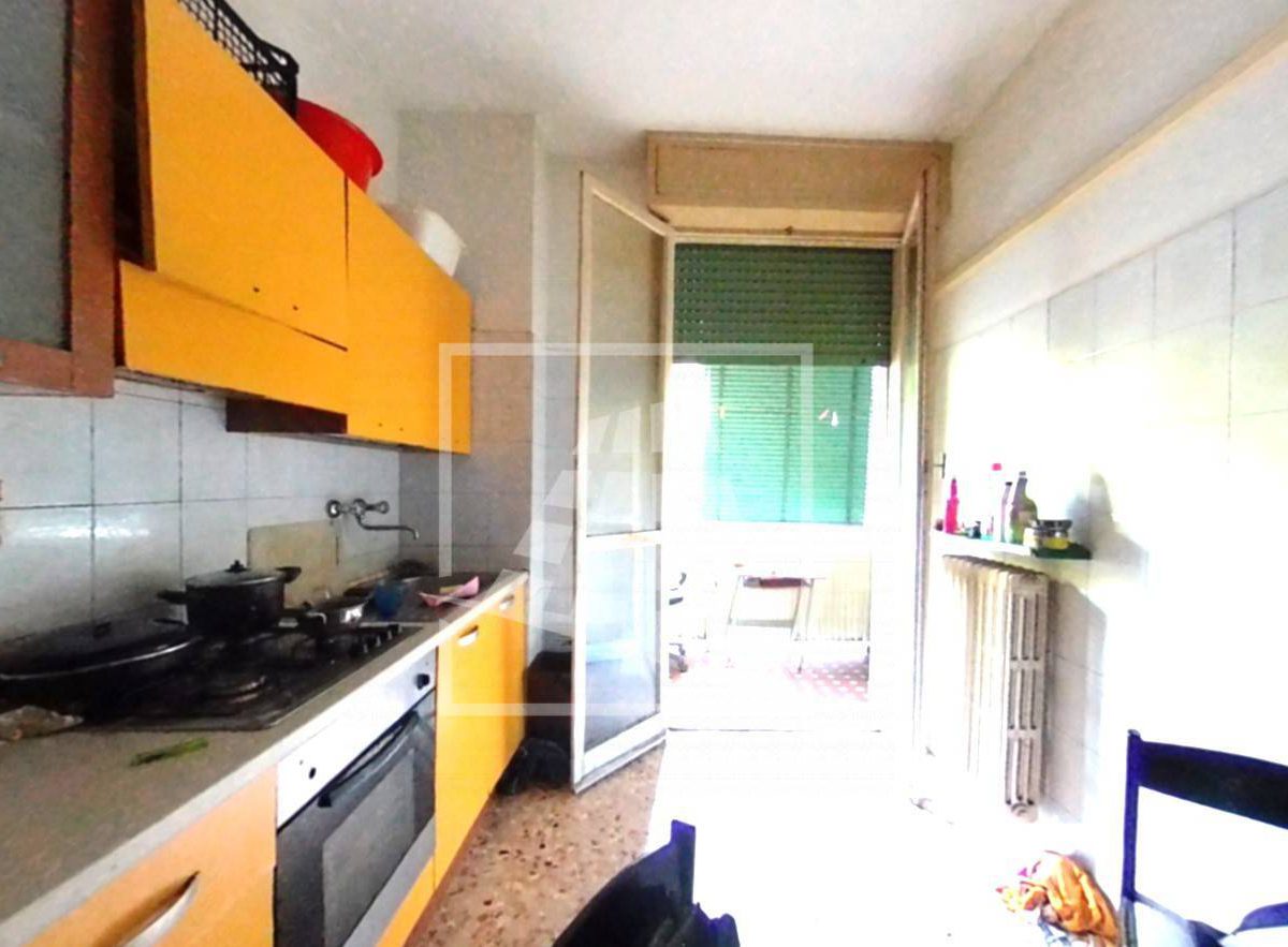 Appartamento sito al piano rialzato, cui si accede dalla scala comune dotata di due ascensori, internamente così suddiviso: ingresso nel locale disimpegno, locale cucina, ampio locale soggiorno, due camere da letto, bagno finestrato con doccia e balconi.