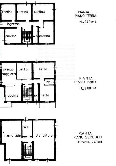 • Al piano terra si trovano 5 locali ad uso cantina e w.c. (parzialmente utilizzati come abitazione ingresso, cucina, camera da letto, bagno e due ripostigli),
