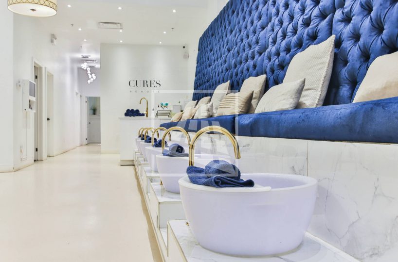 Le due grandi vetrine, che corrono su due interi lati del locale regalano luminosità agli interni e grande visibilità per la clientela.