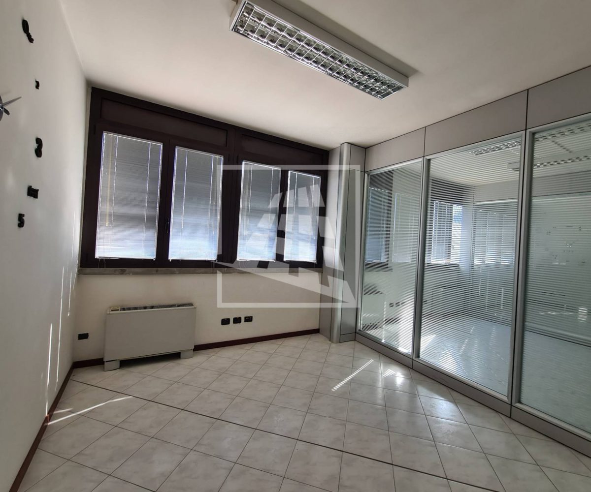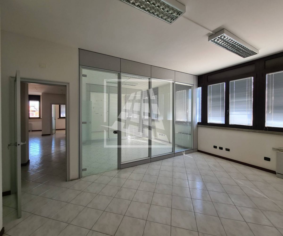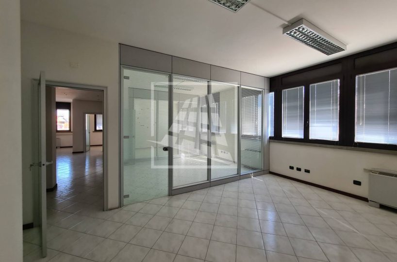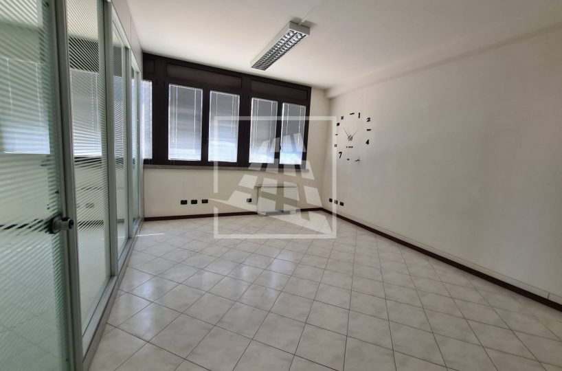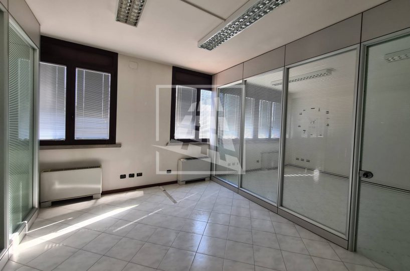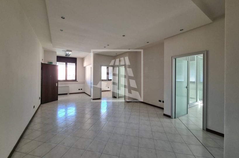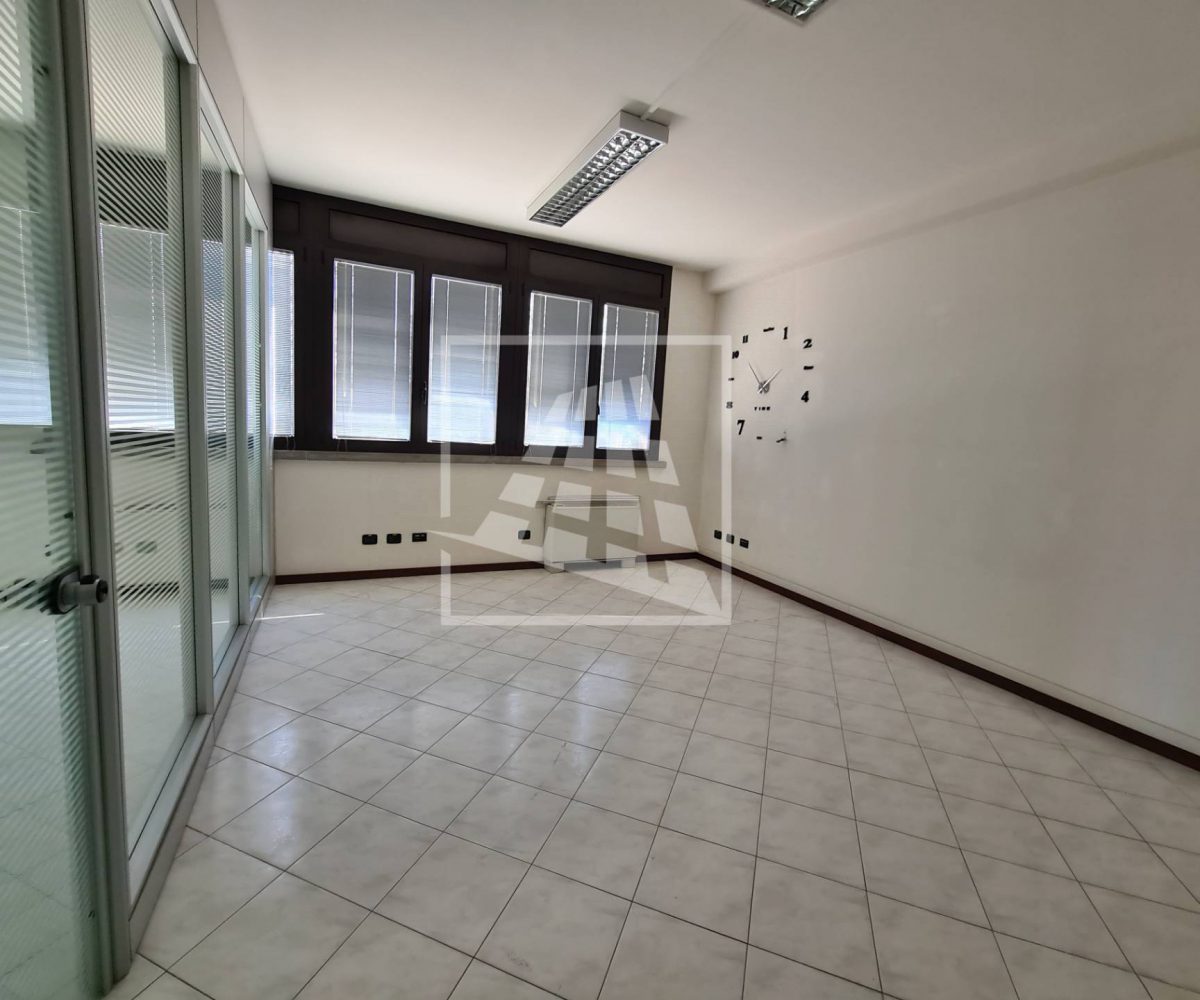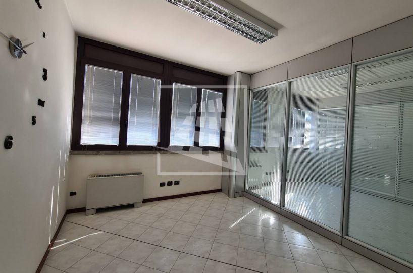L’ingresso è indipendente, con ampia reception/sala attesa e quattro vani ricavate mediante pareti attrezzate mobili e cartongesso, doppi servizi con antibagno.