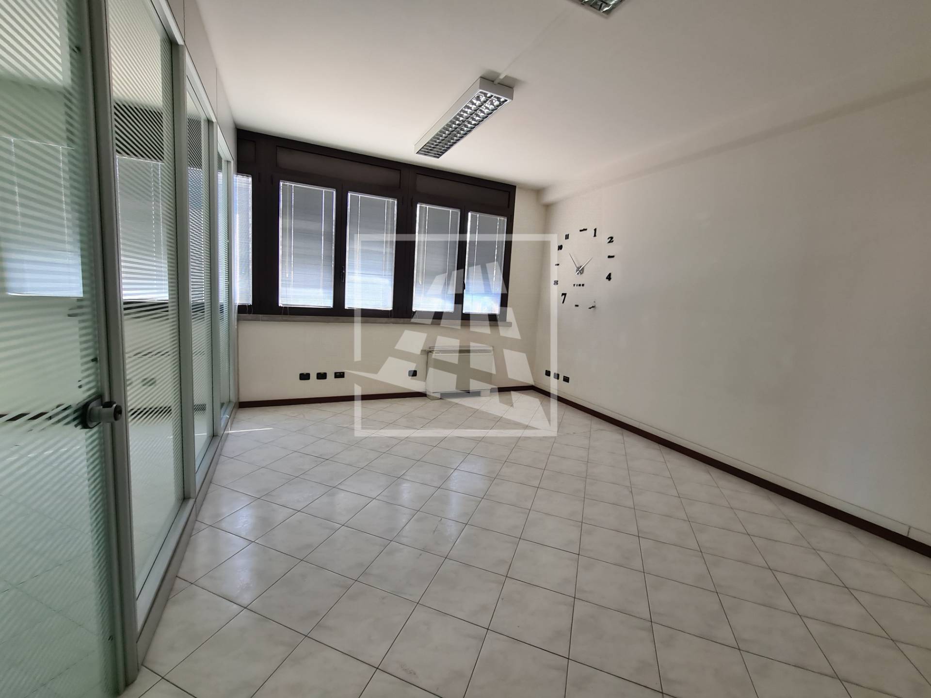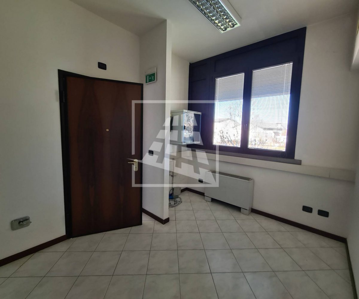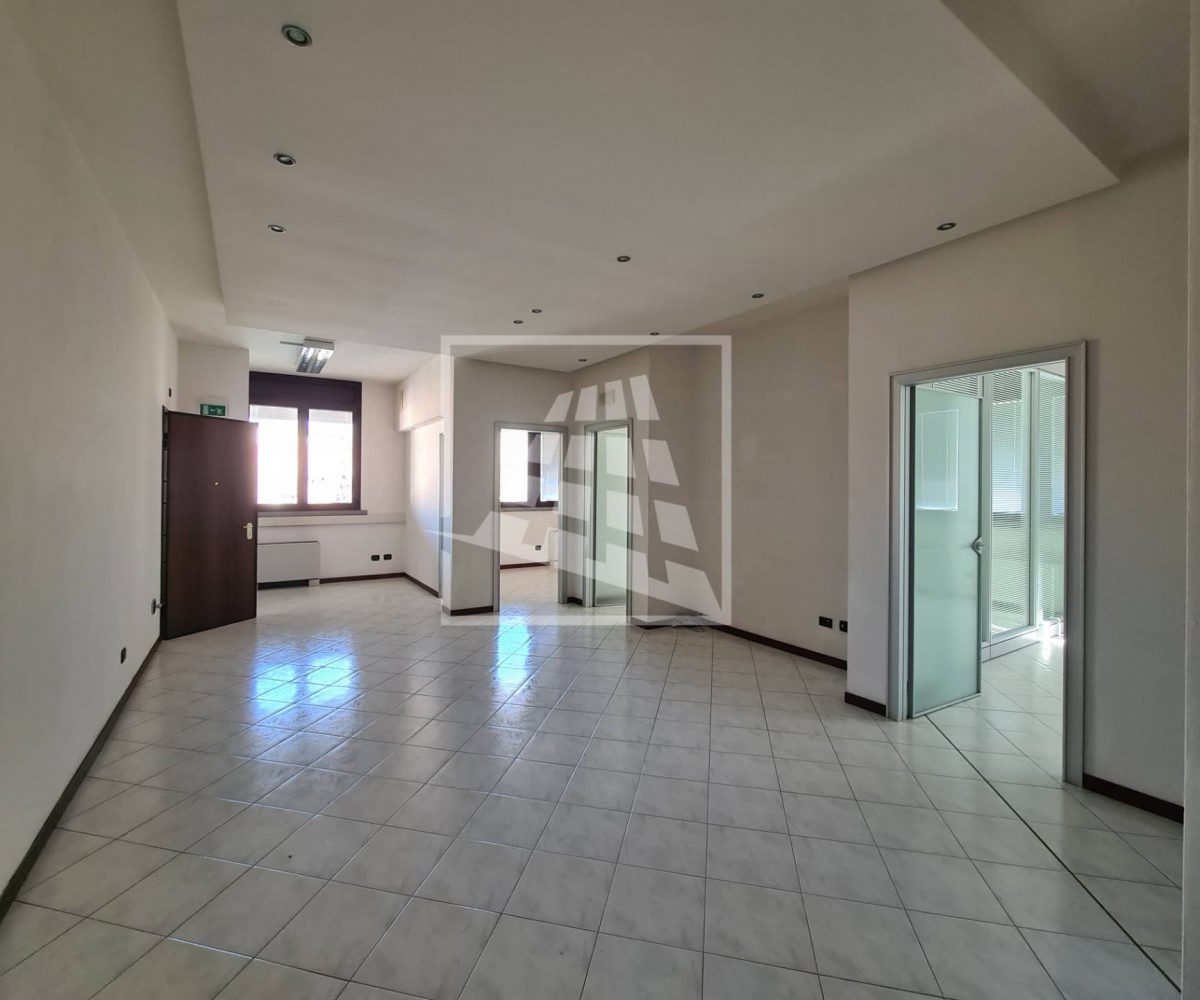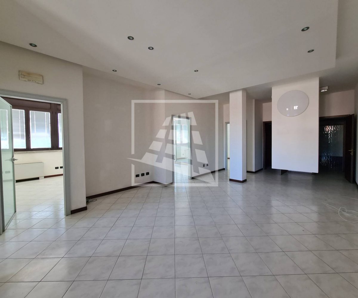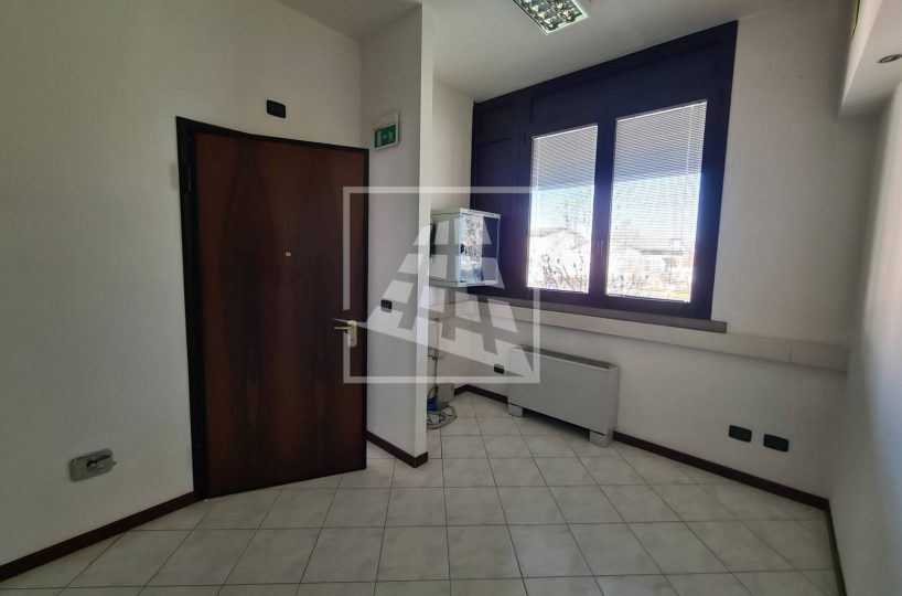 L’ingresso è indipendente, con ampia reception/sala attesa e quattro vani ricavate mediante pareti attrezzate mobili e cartongesso, doppi servizi con antibagno.