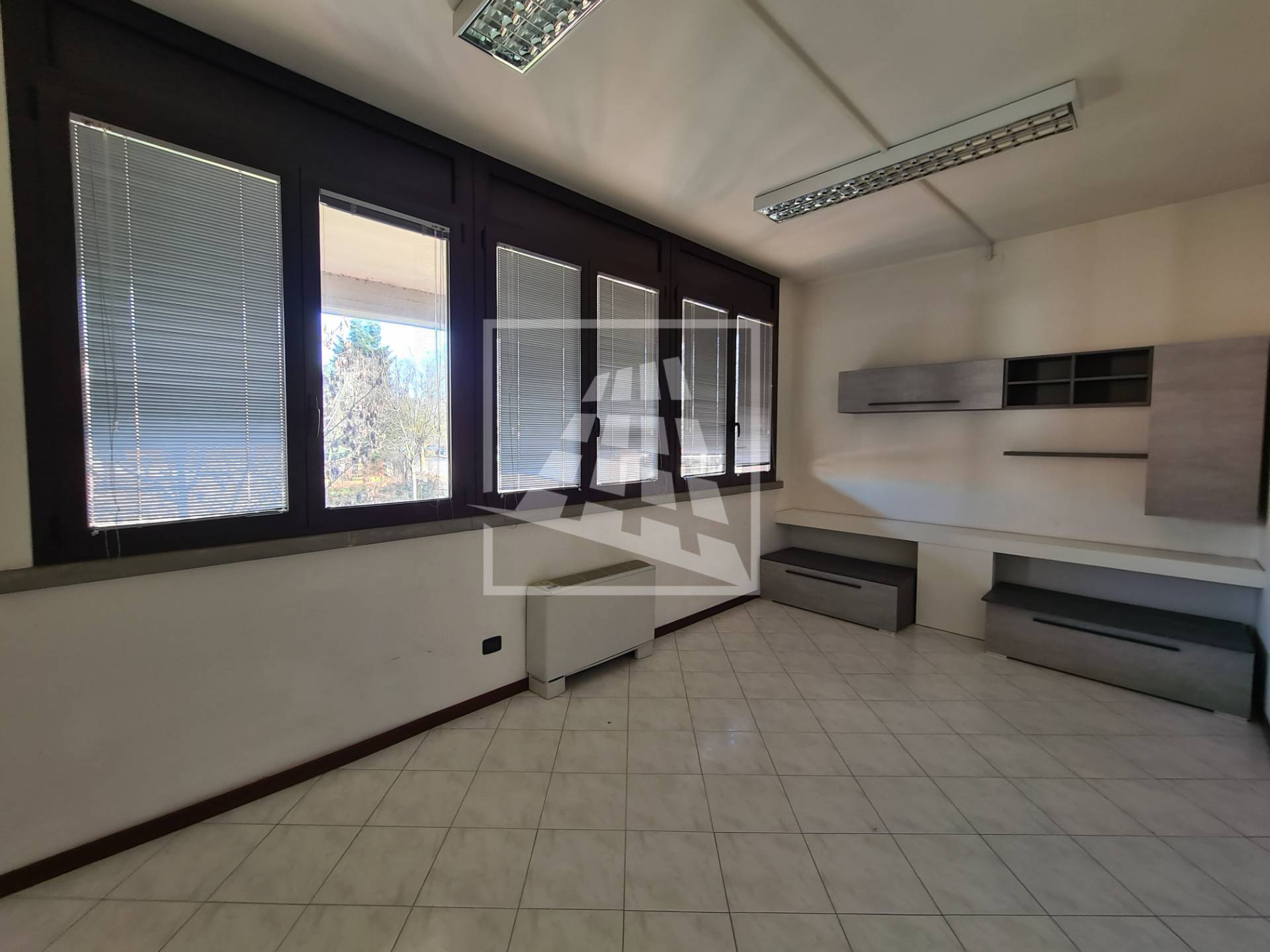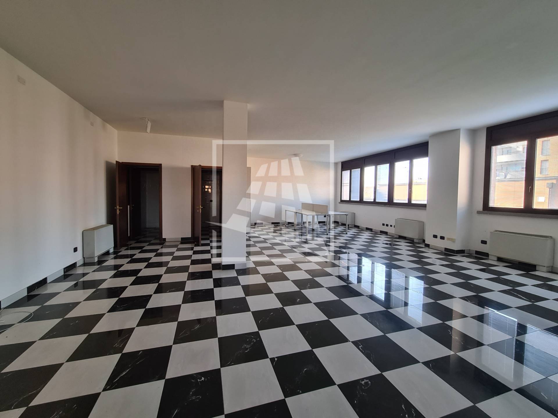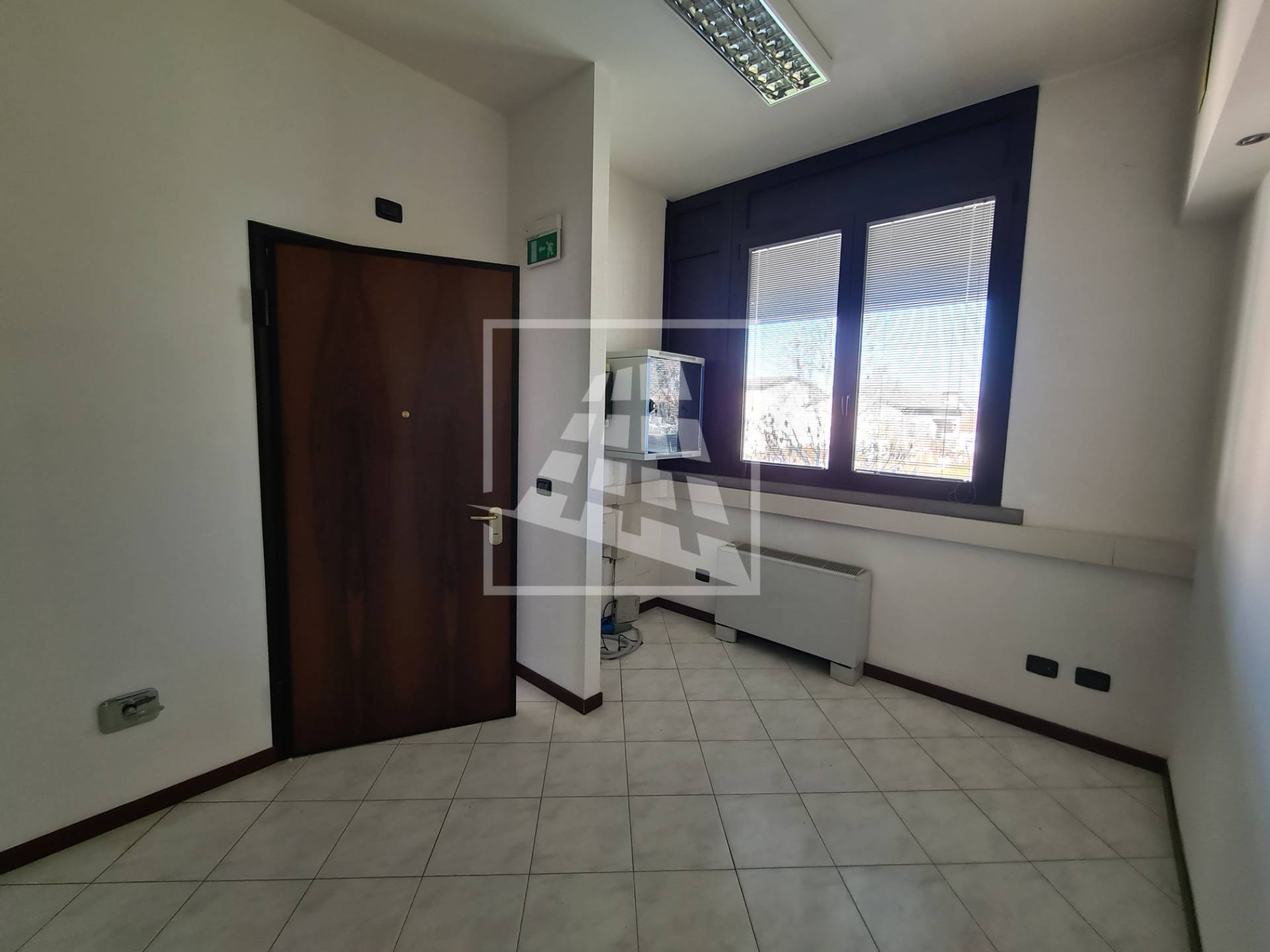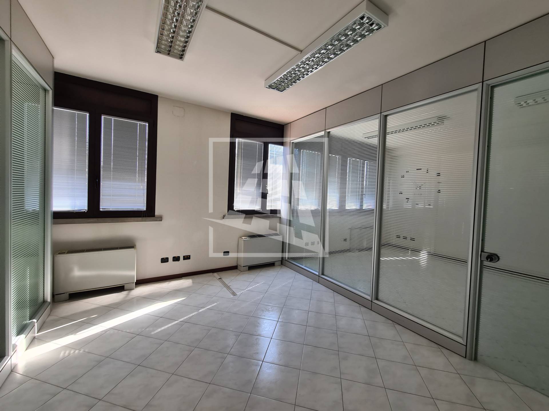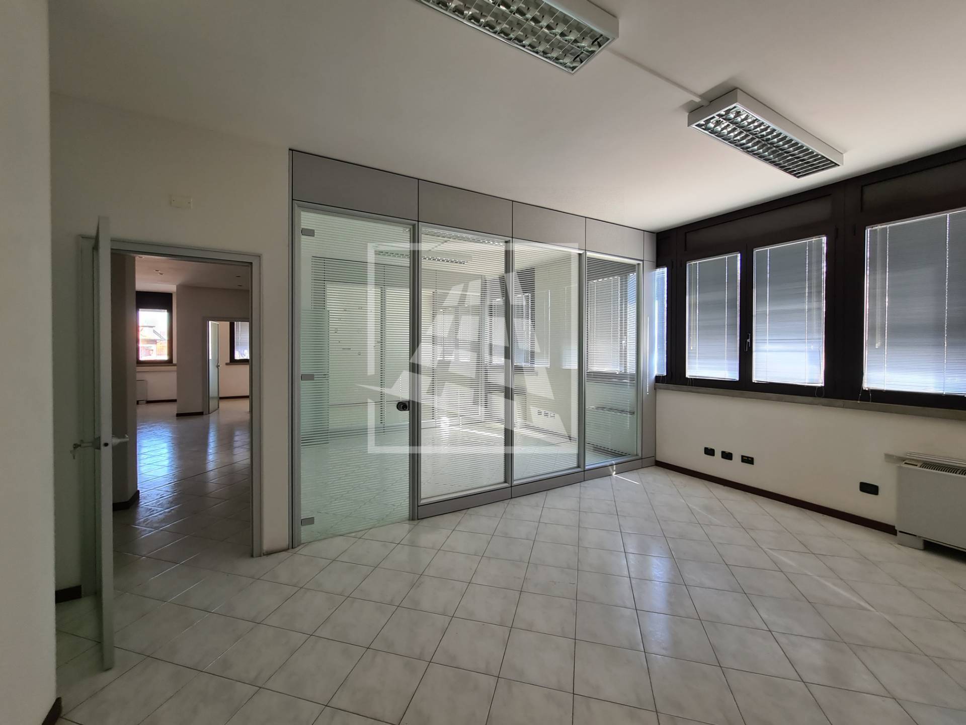 L’ingresso è indipendente, con ampia reception/sala attesa e quattro vani ricavate mediante pareti attrezzate mobili e cartongesso, doppi servizi con antibagno.