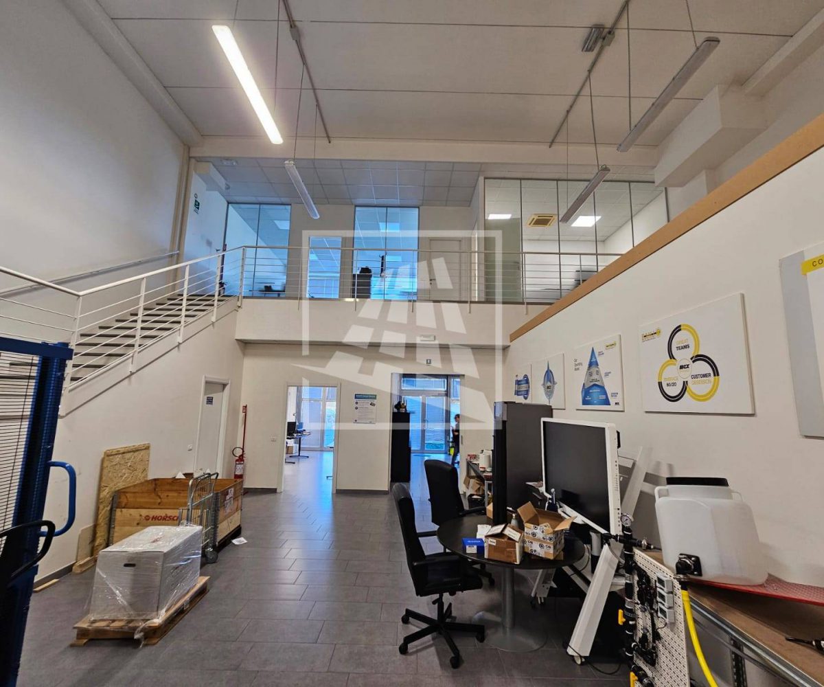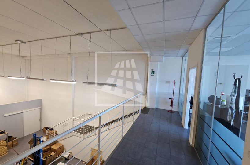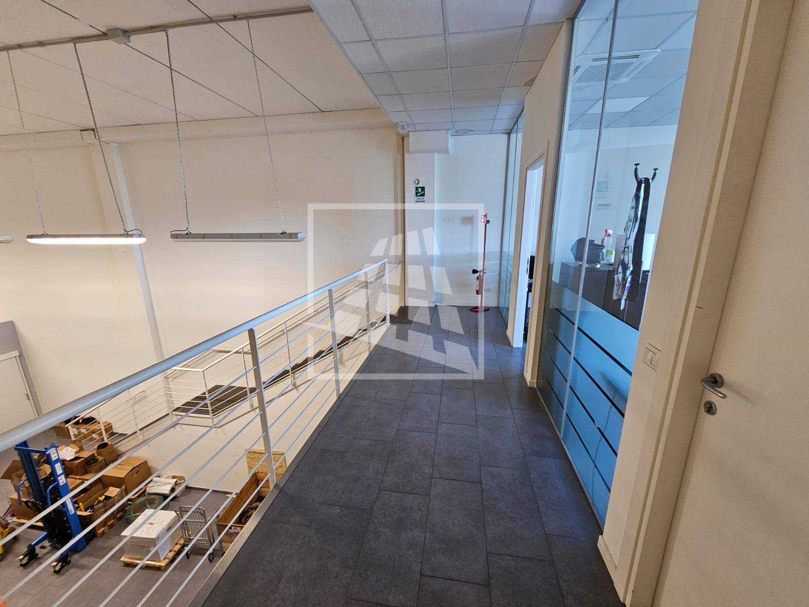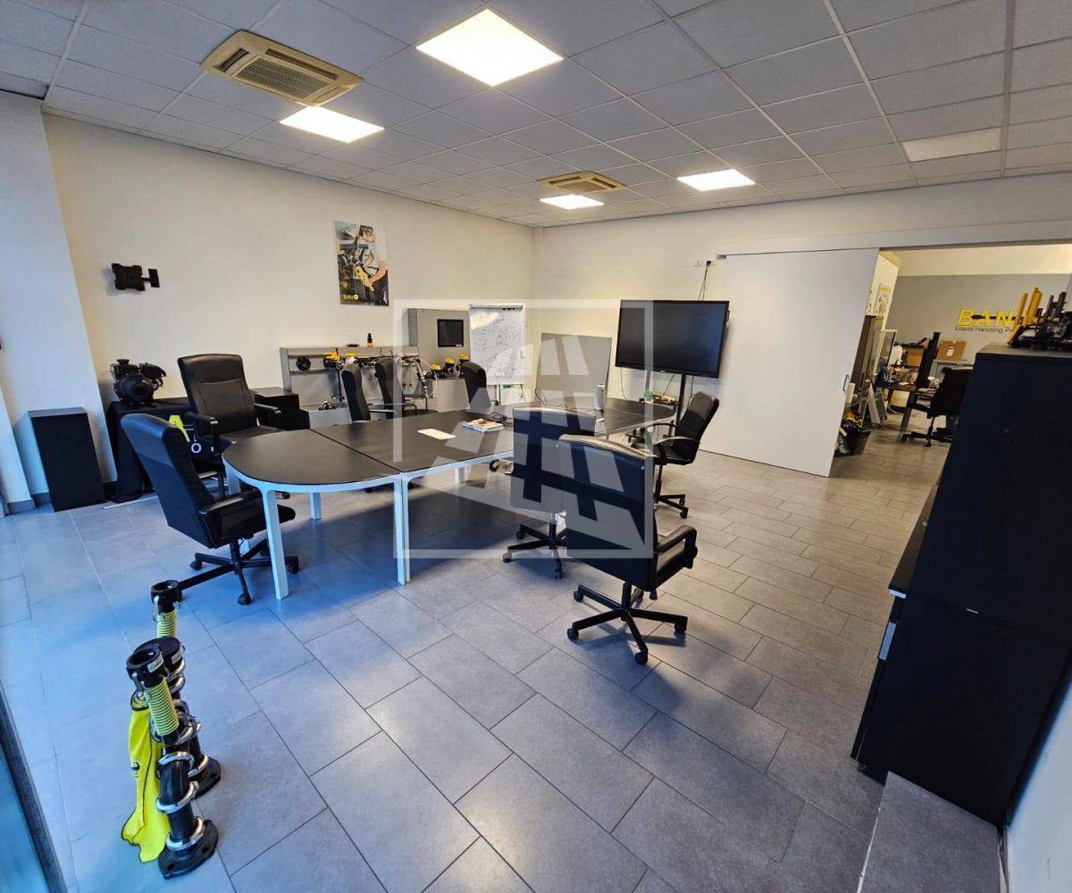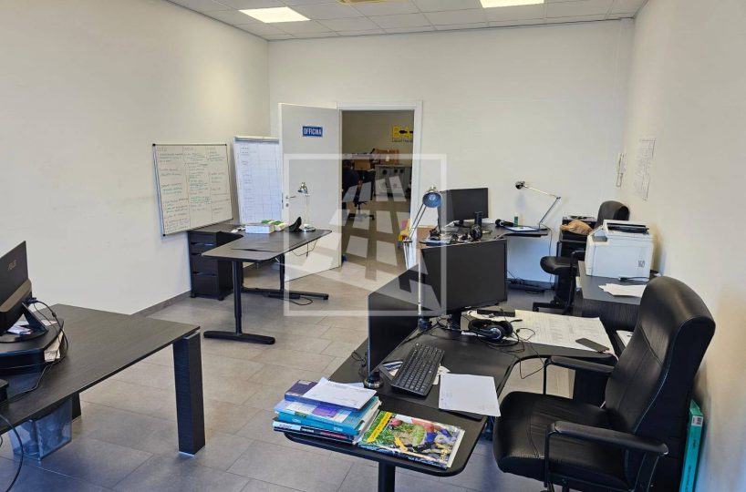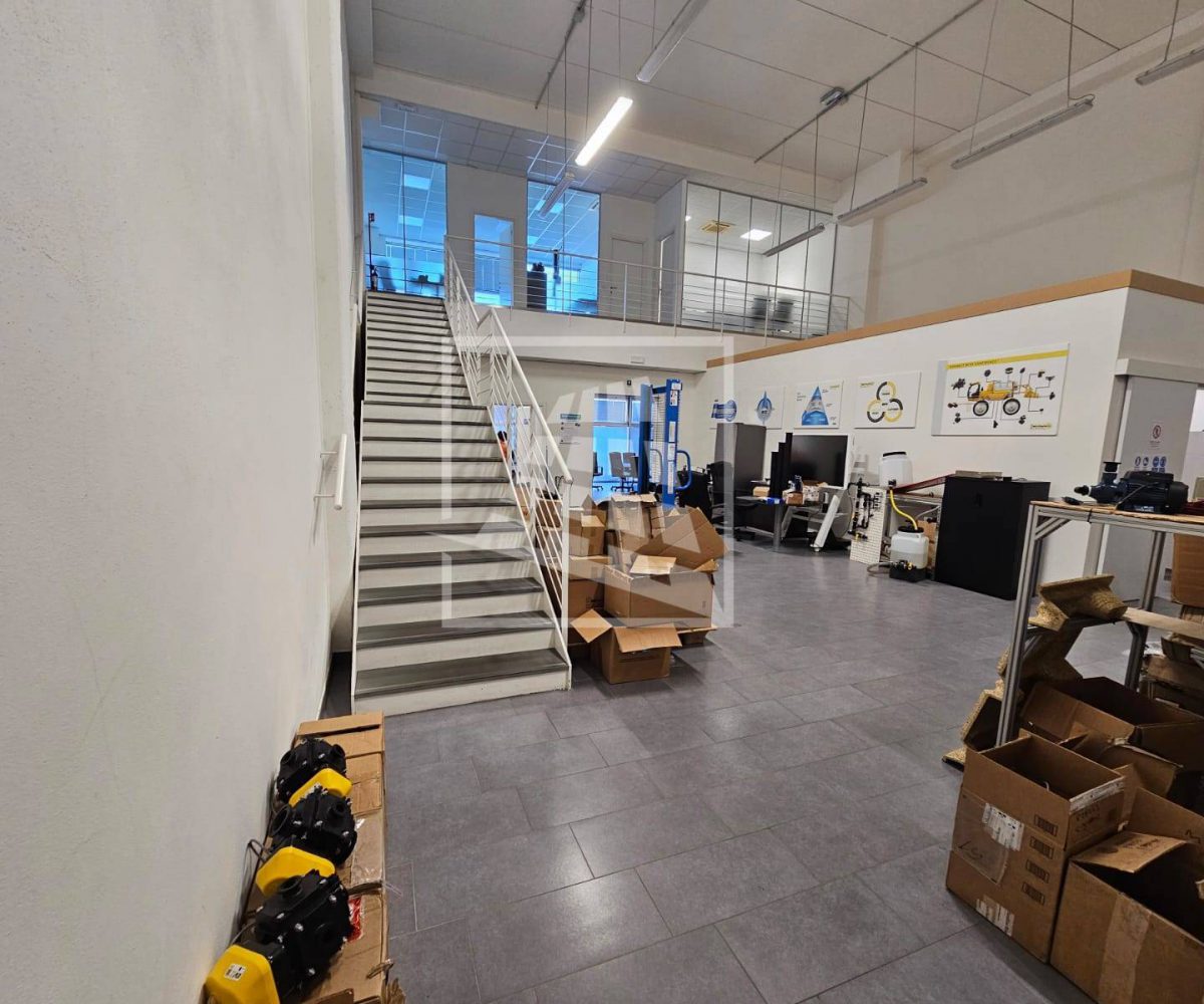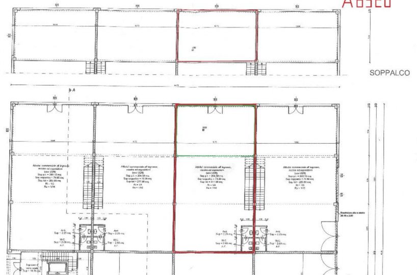 Al piano primo, servito da una scala vi sono 76 mq attualmente già divisi da pannelli in due vani attualmente uso uffici e sala riunioni.