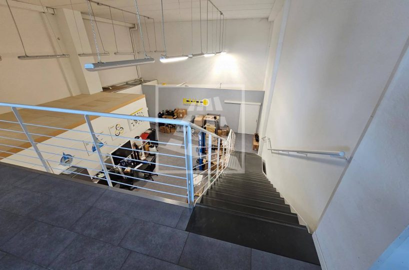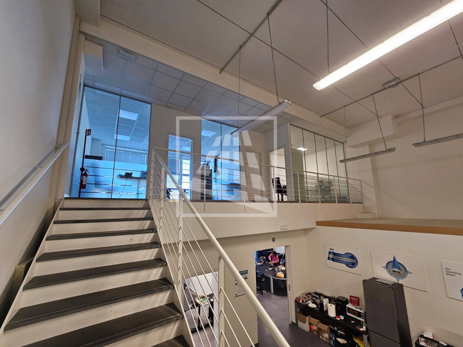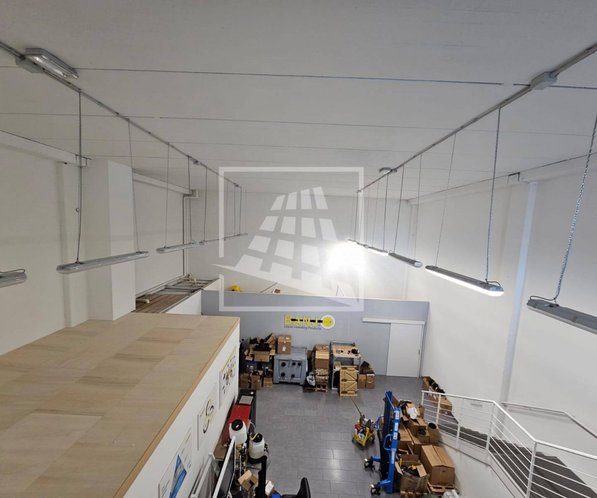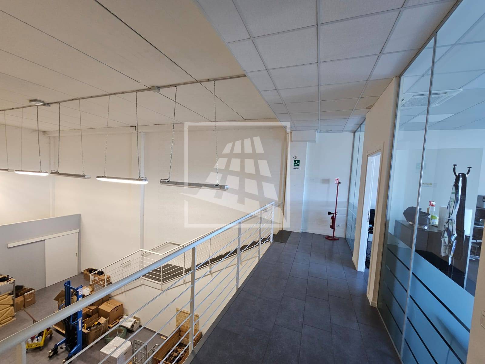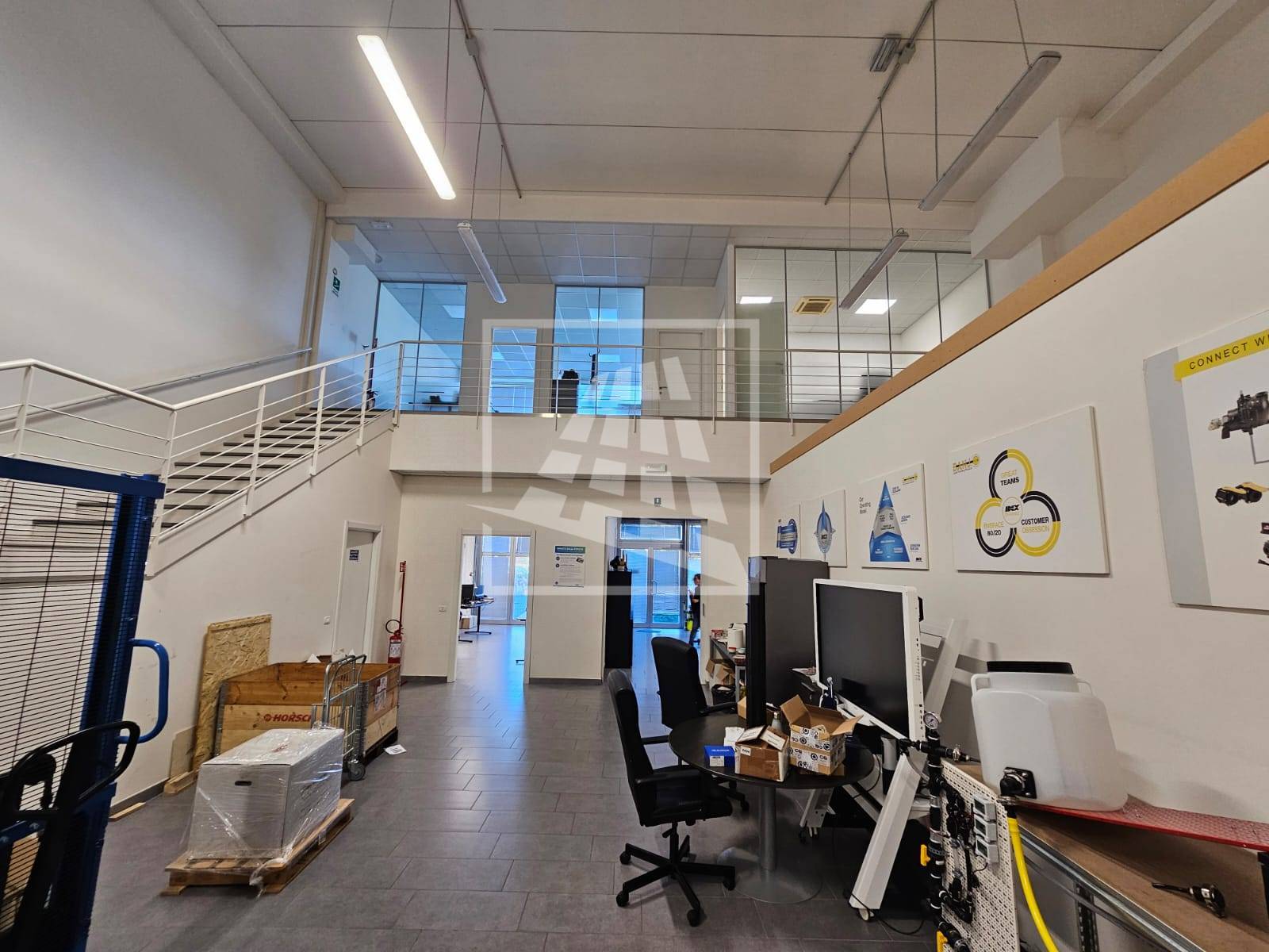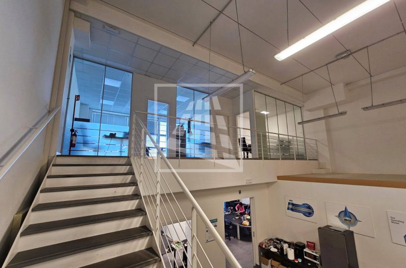Al piano primo, servito da una scala vi sono 76 mq attualmente già divisi da pannelli in due vani attualmente uso uffici e sala riunioni.