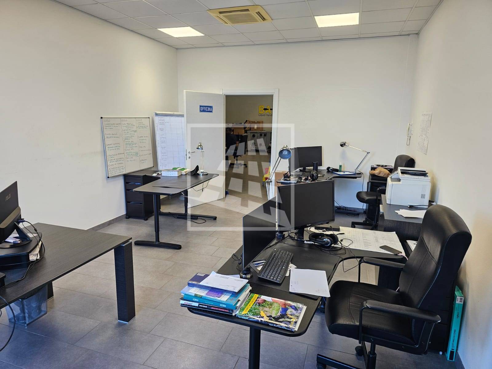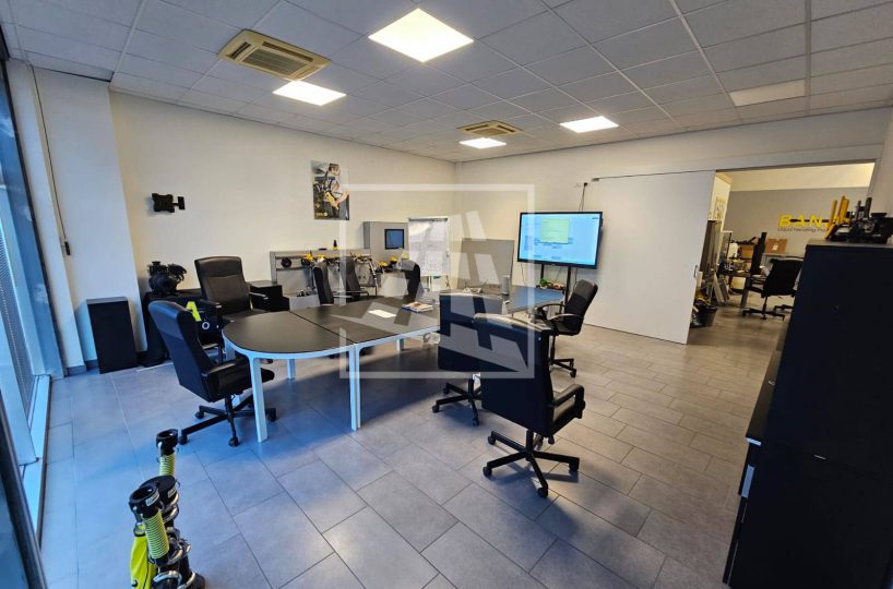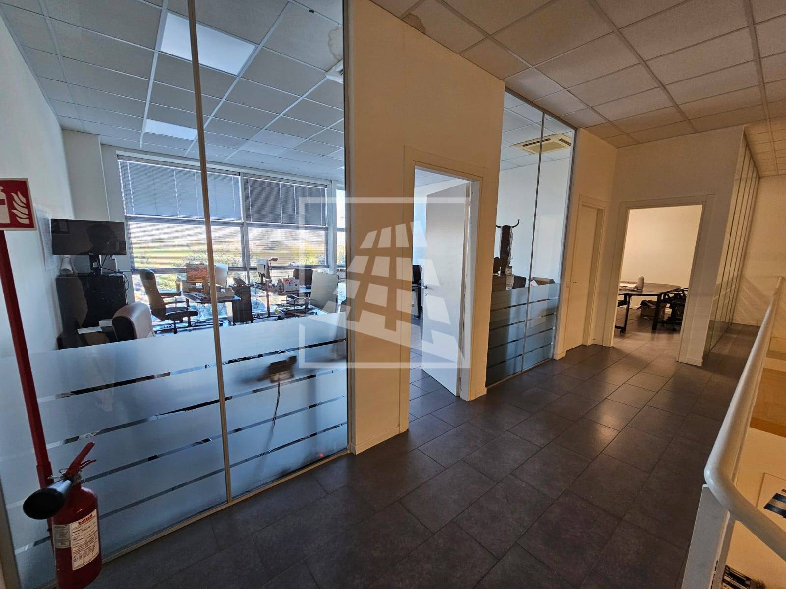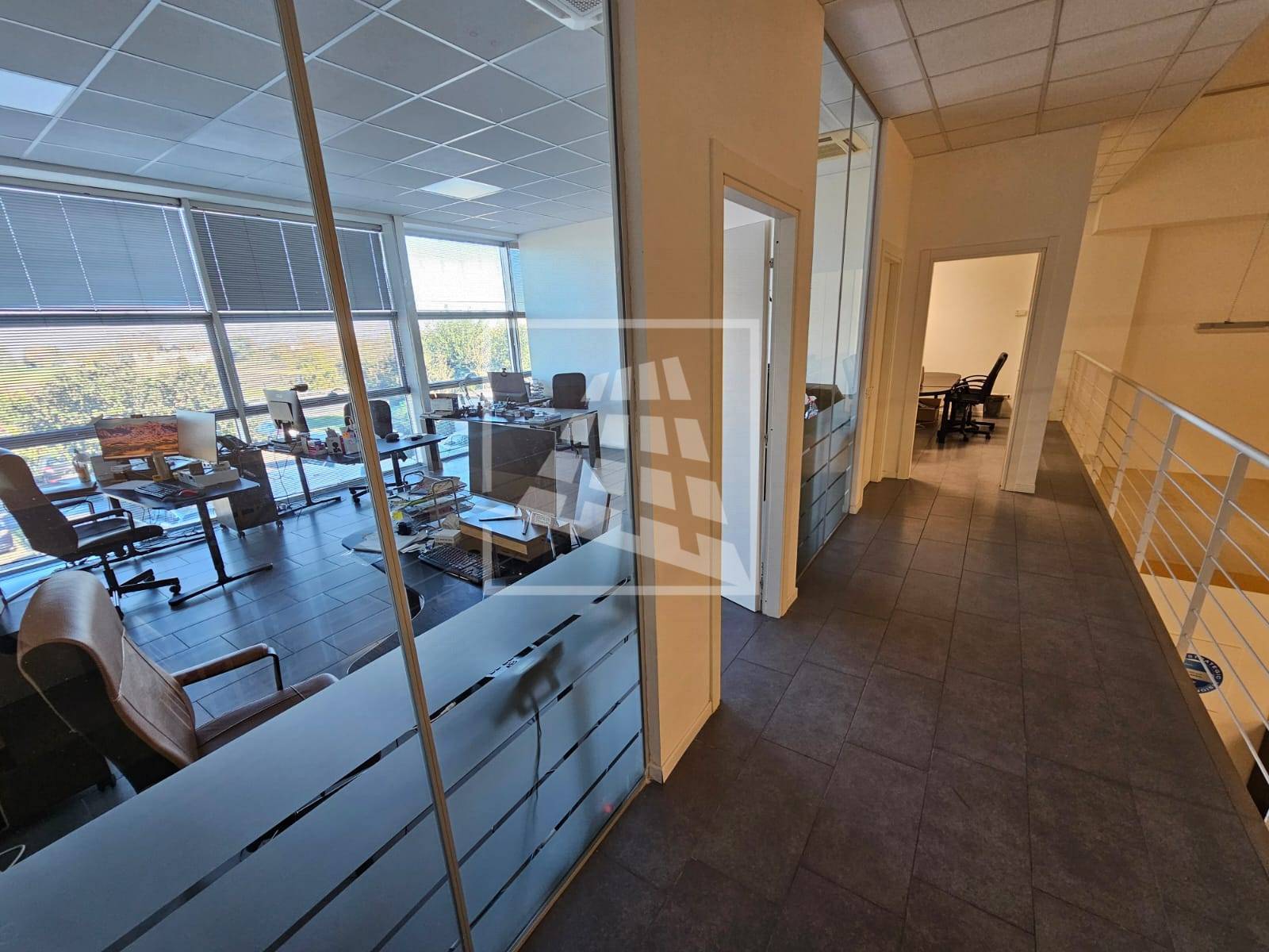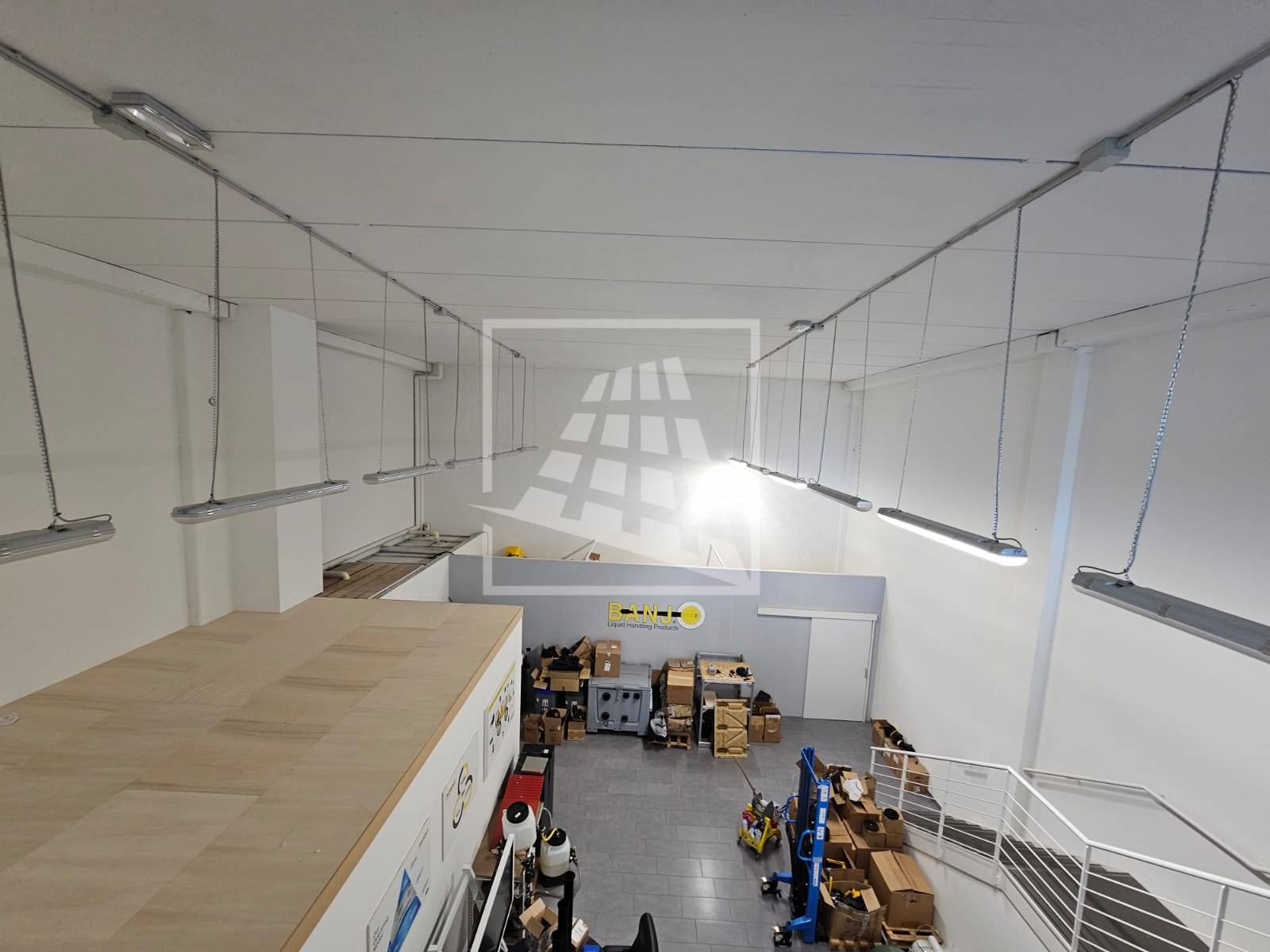 Al piano primo, servito da una scala vi sono 76 mq attualmente già divisi da pannelli in due vani attualmente uso uffici e sala riunioni.