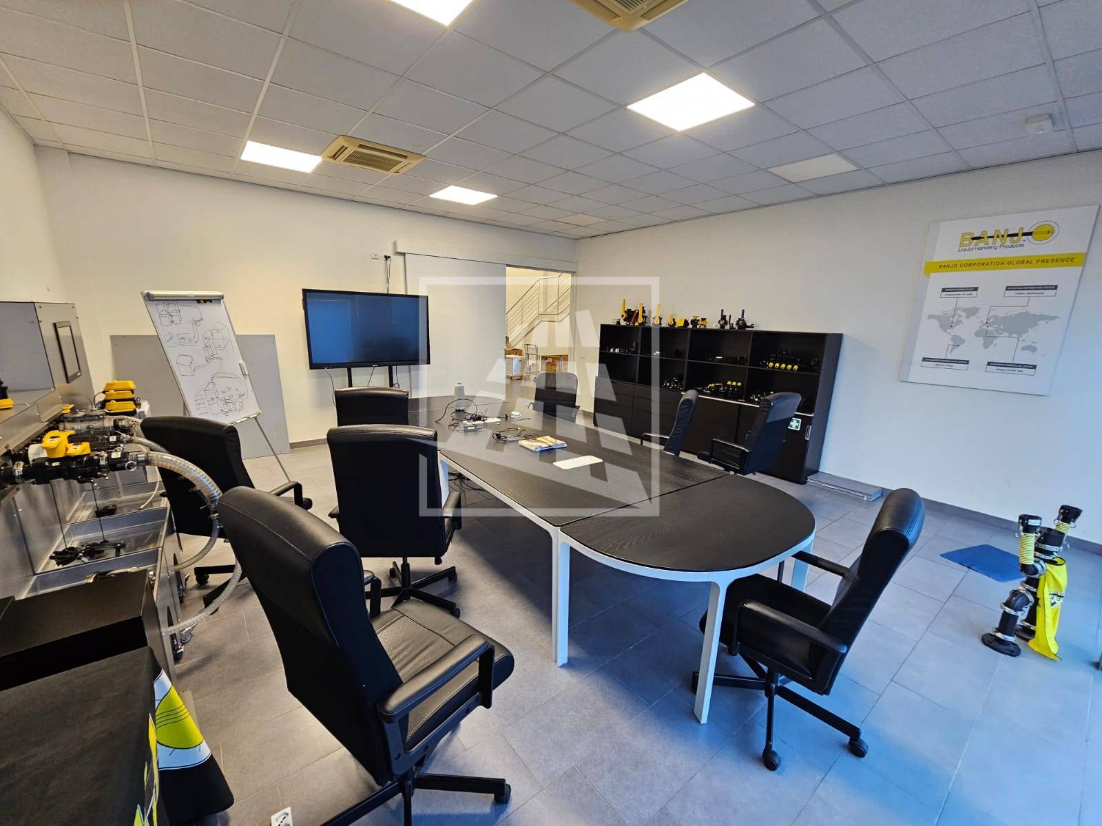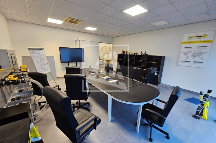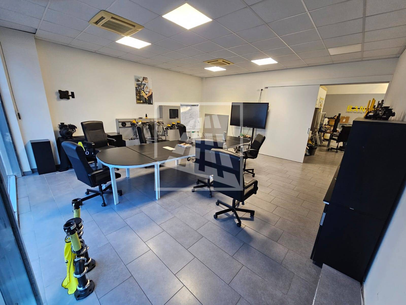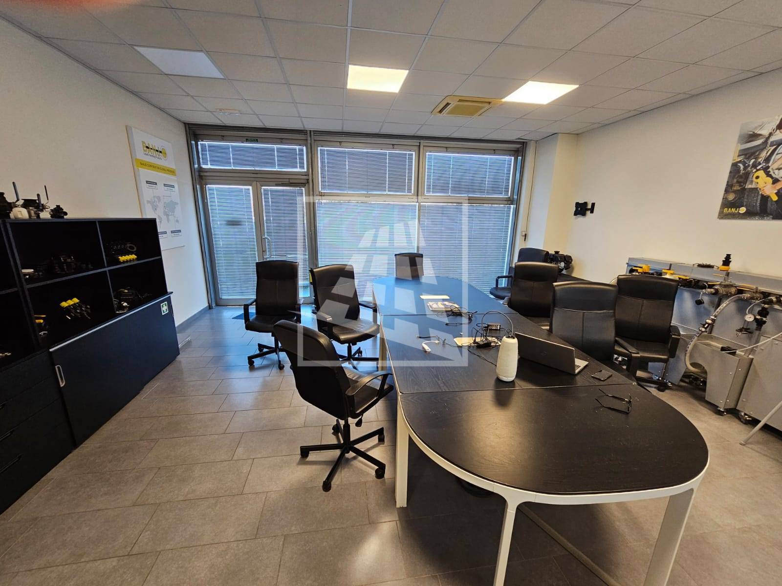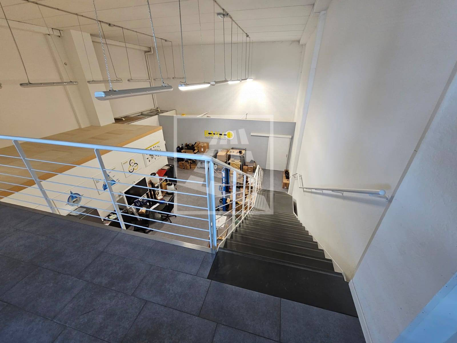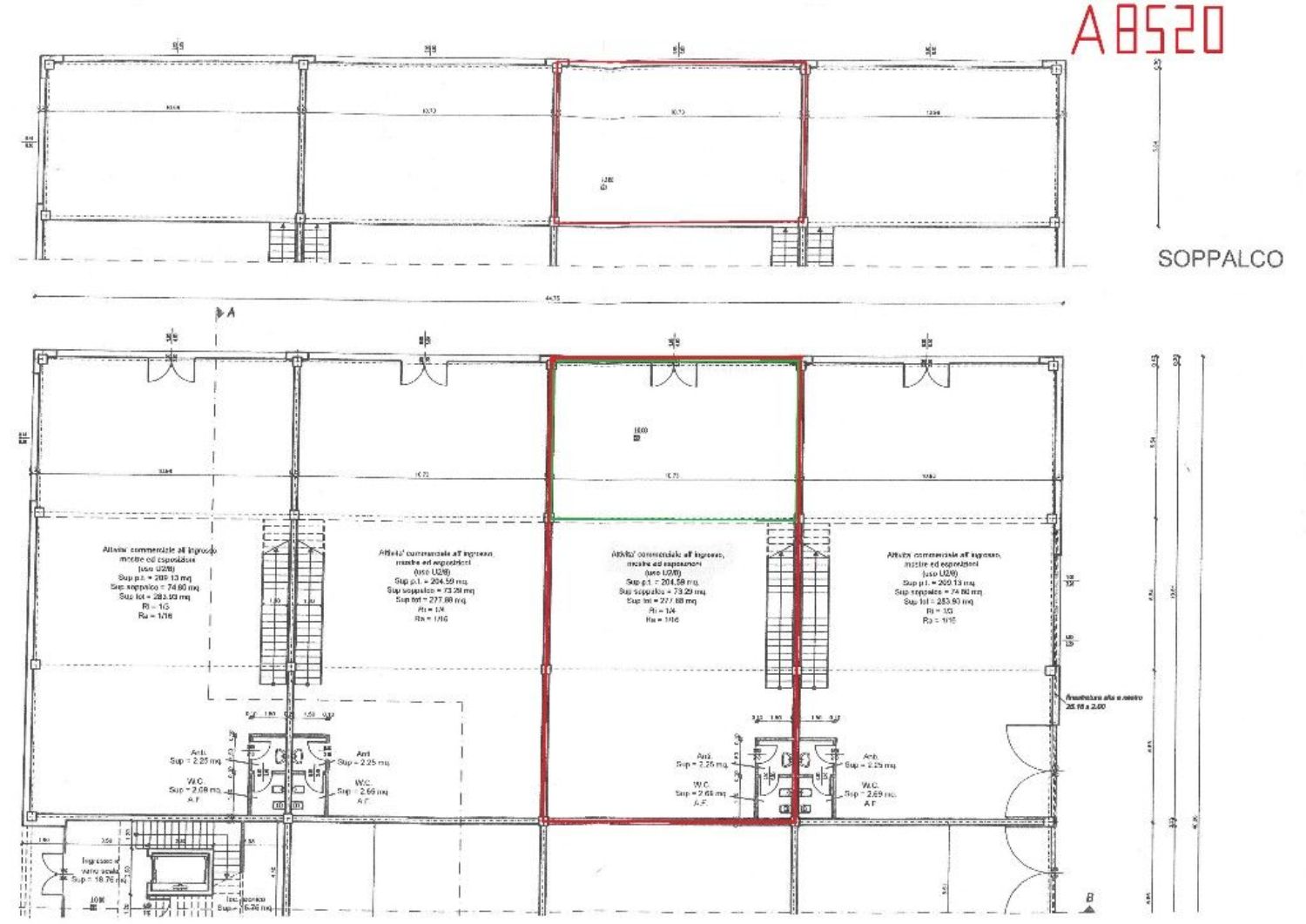 Al piano primo, servito da una scala vi sono 76 mq attualmente già divisi da pannelli in due vani attualmente uso uffici e sala riunioni.