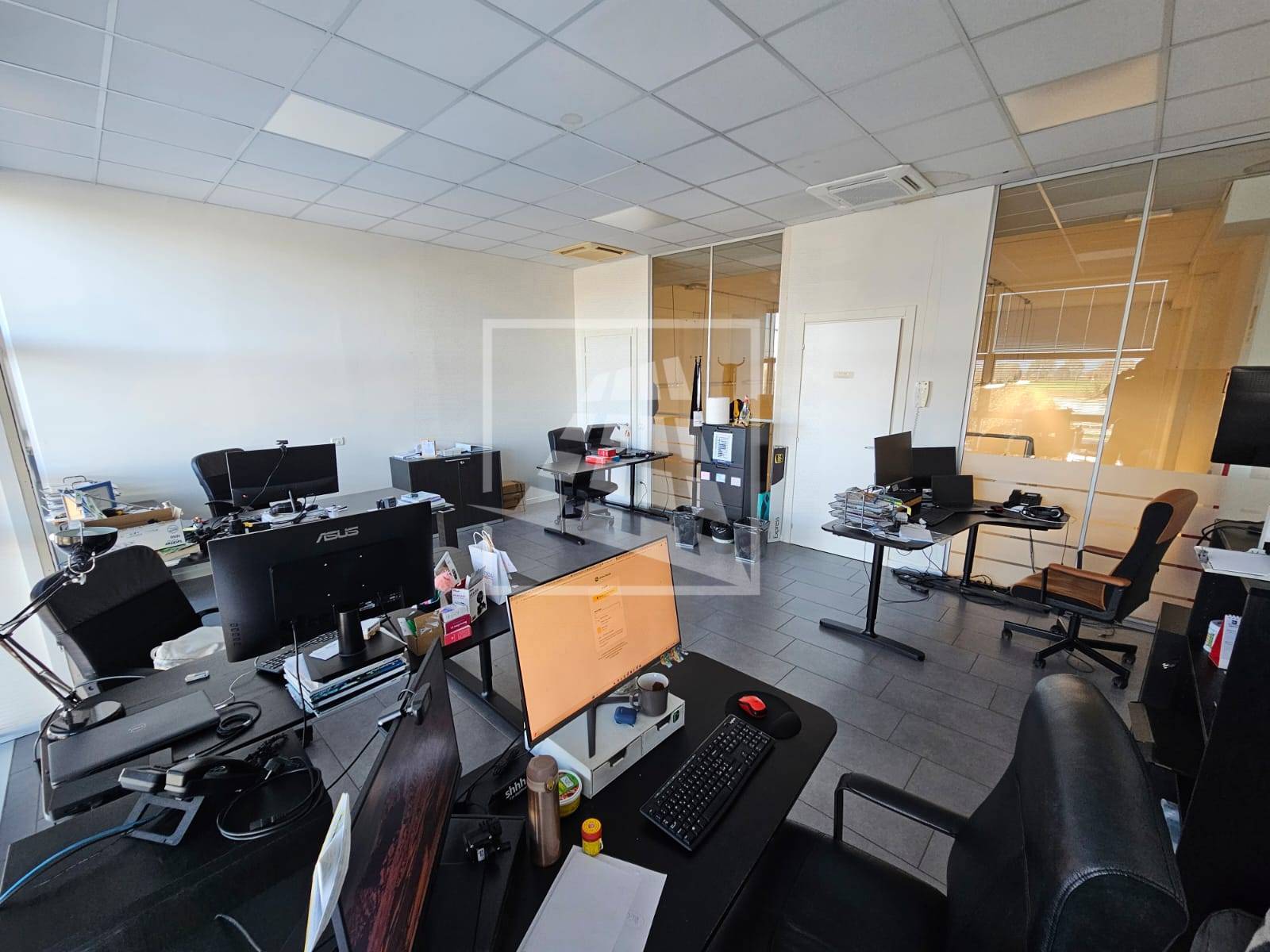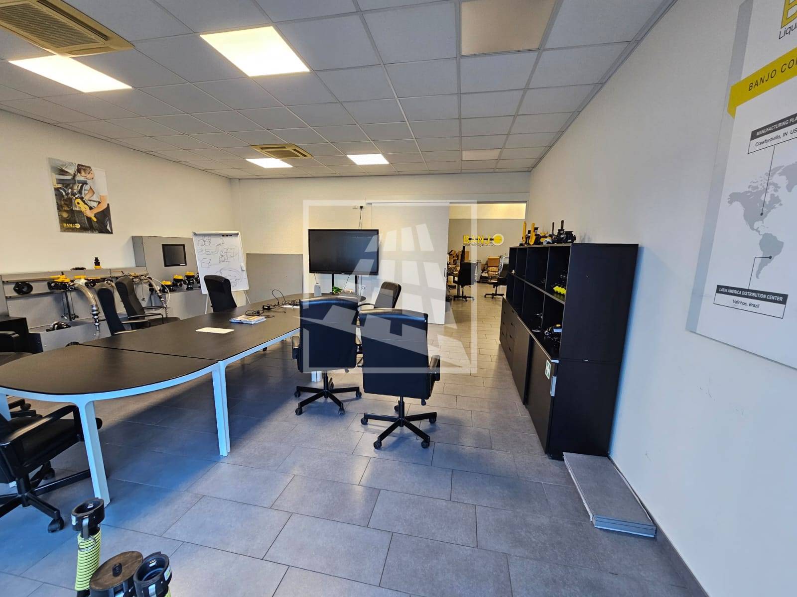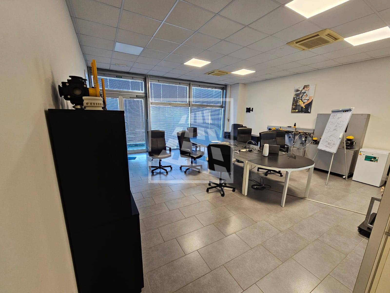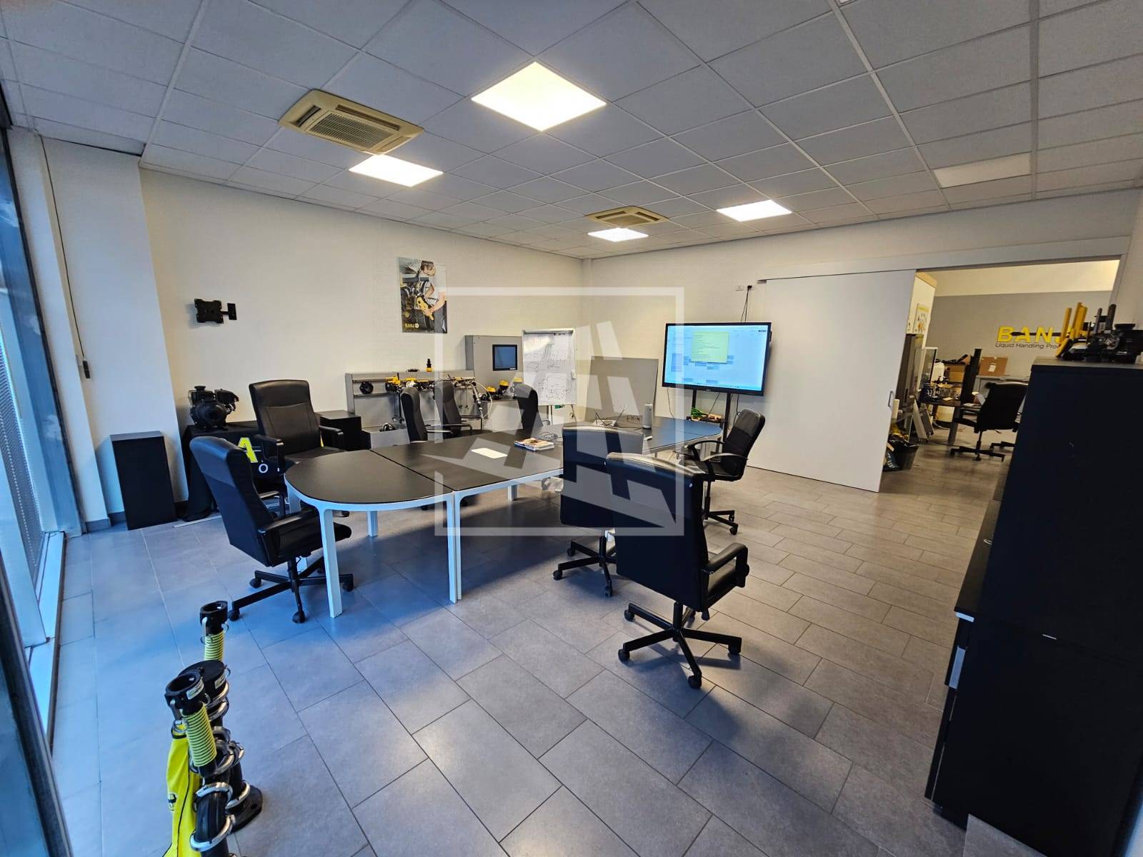 Il riscaldamento e il raffrescamento sono autonomi, vi sono corpi illuminanti e rete dati, tutta la zona anteriore e uffici ha controsoffitti.