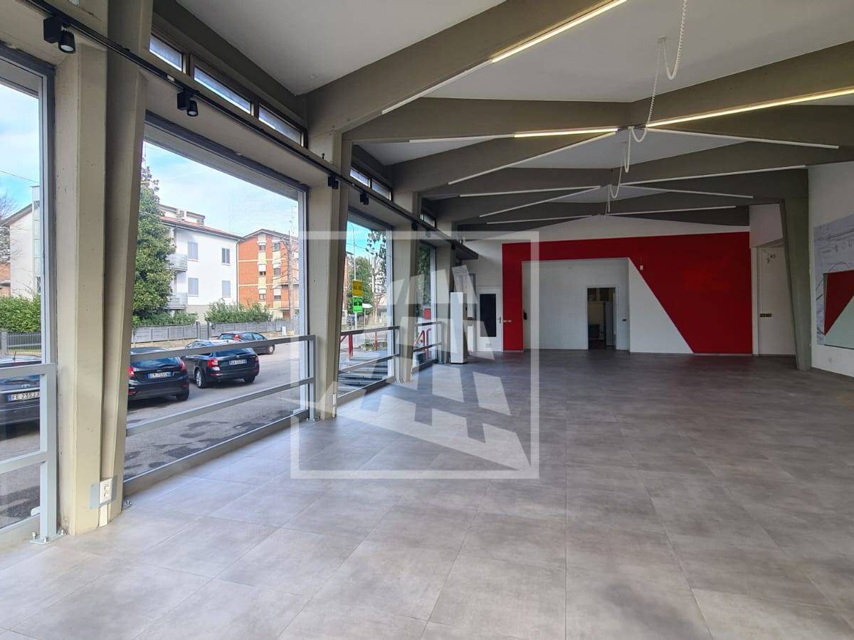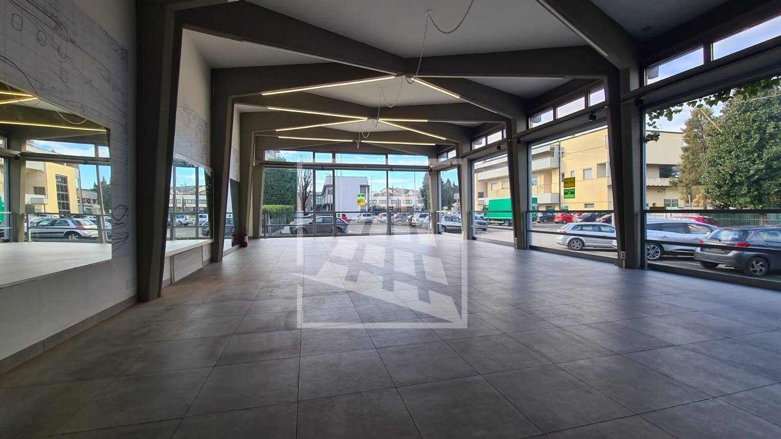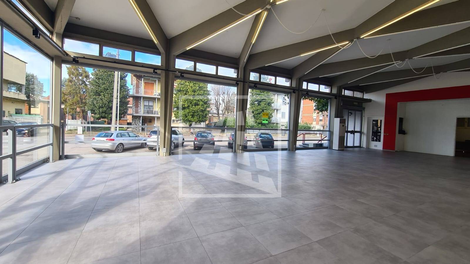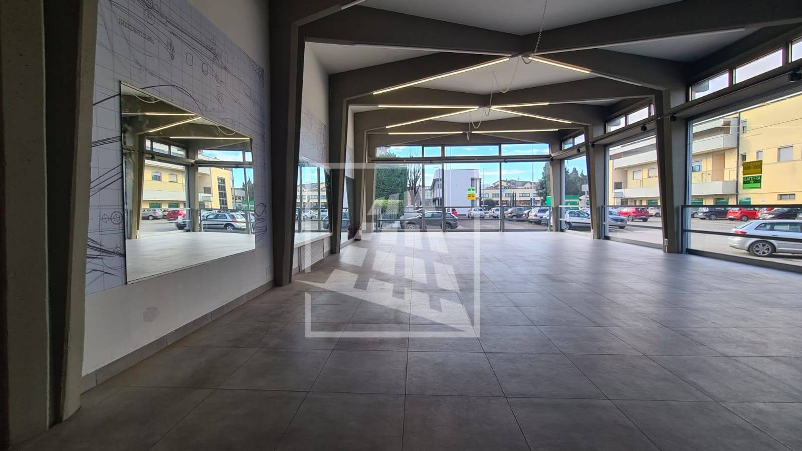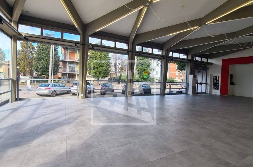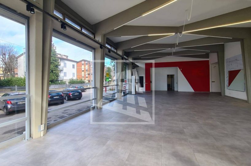 La sala mostra ha ben 7 ampie vetrate che corrono su due lati del locale, garantendo luminosità e ottima visibilità dalla strada su cui si affaccia l’immobile.