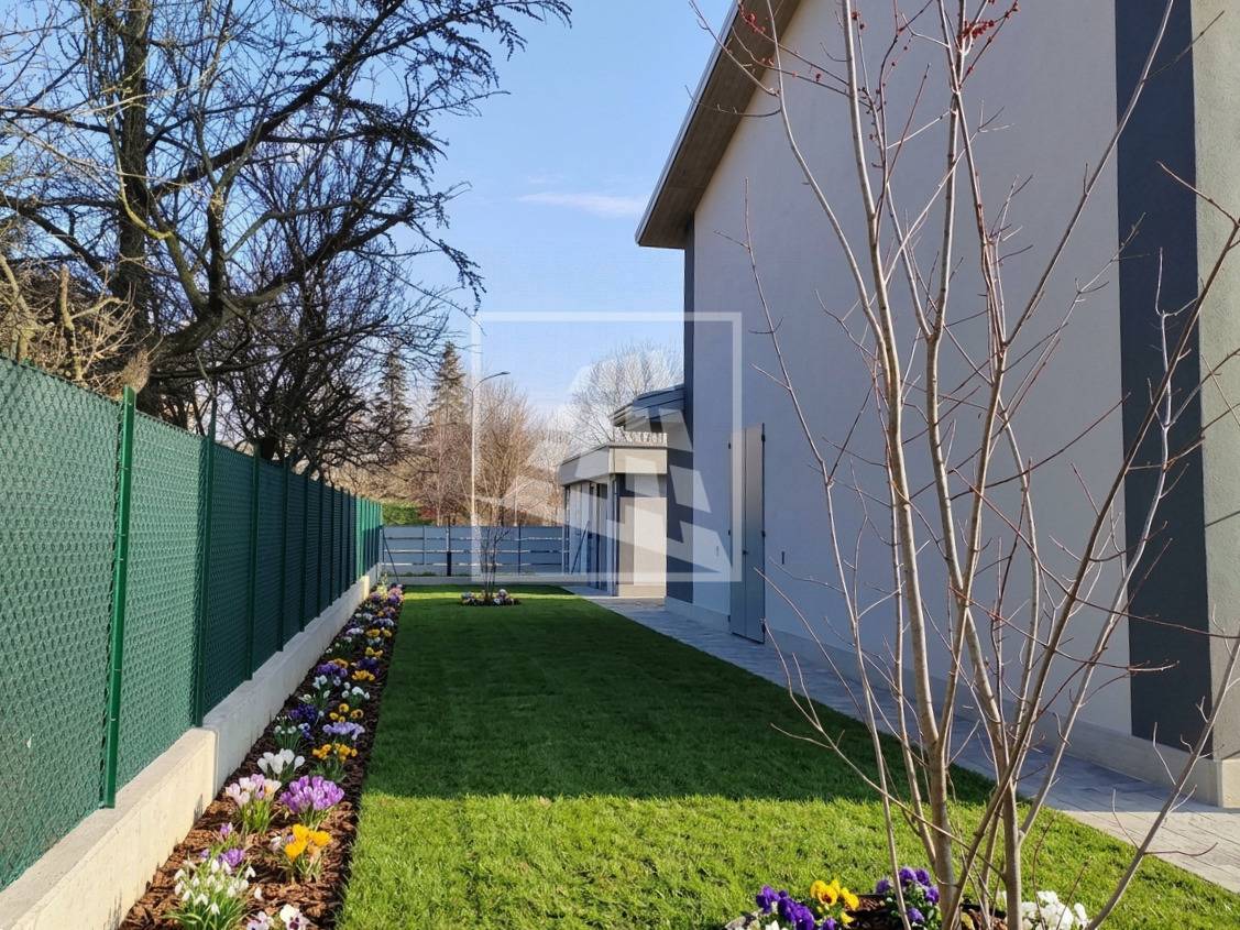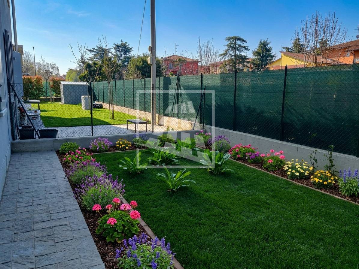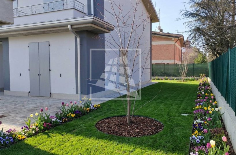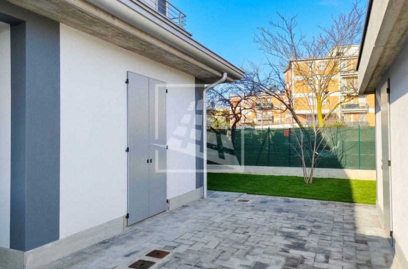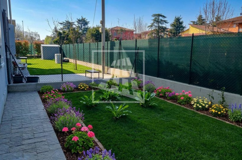 Completano la proprietà un ampio giardino di circa 220 mq in proprietà esclusiva, un Garage singolo di mq 15 con deposito attrezzi e un posto auto in proprietà esclusiva.