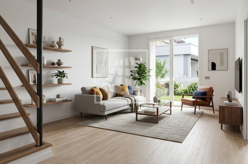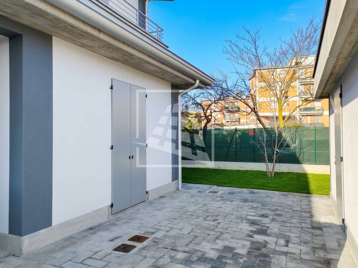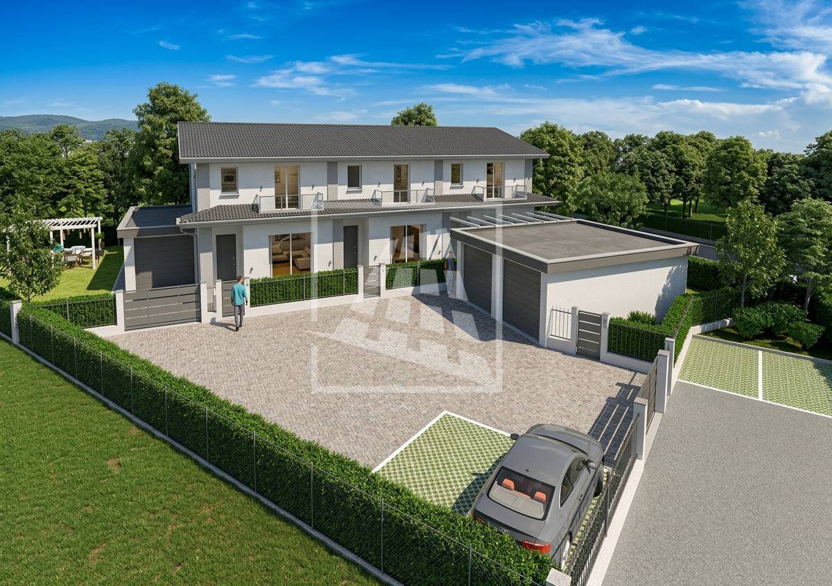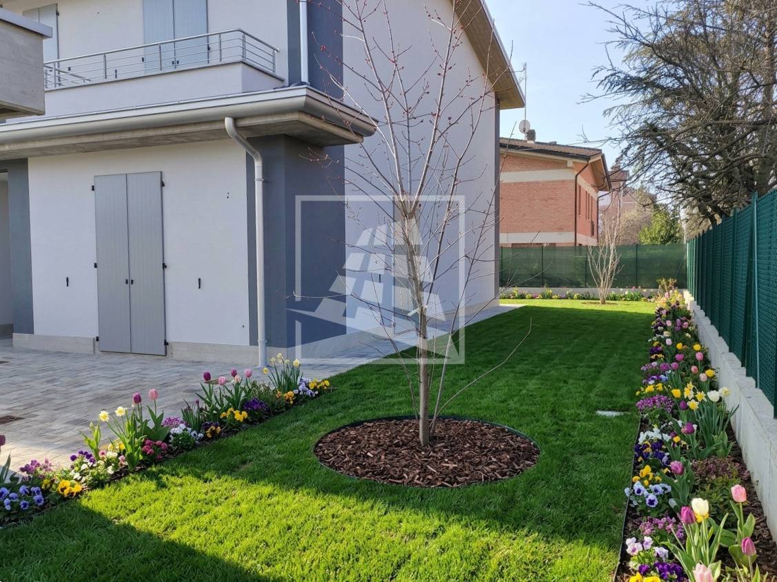 Completano la proprietà un ampio giardino di circa 220 mq in proprietà esclusiva, un Garage singolo di mq 15 con deposito attrezzi e un posto auto in proprietà esclusiva.