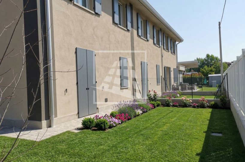 L’immobile è una villa a schiera d’ angolo di circa 140 mq, con ampio giardino in proprietà esclusiva di 220 mq circa, disposta al piano terra e primo, così composta: