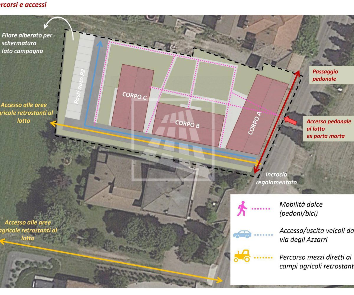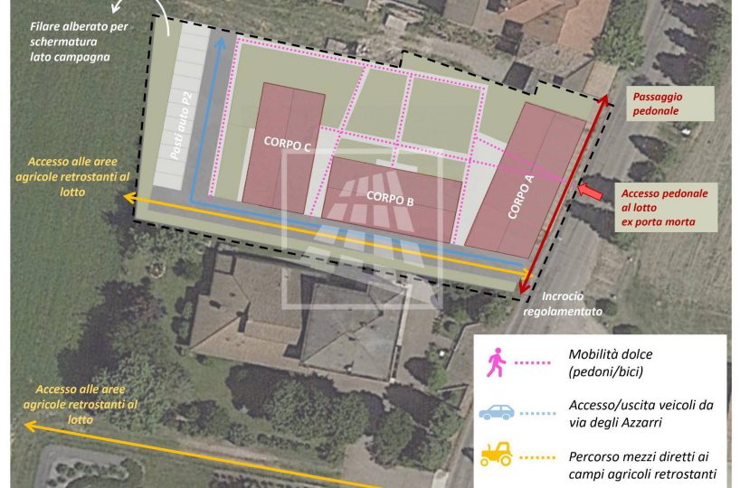 Il “Borgo degli Azzarri” sarà composto da 3 distinti fabbricati sviluppati secondo un’impostazione architettonica che rispecchierà i principi della tradizione costruttiva rurale reggiana riprendendone gli elementi distintivi come proporzioni armoniose e volumi ben equilibrati, materiali tradizionali reinterpretati in chiave moderna, coperture a due falde e finiture esterne coerenti con il paesaggio circostante al fine di garantire una continuità estetica con il contesto territoriale agricolo.