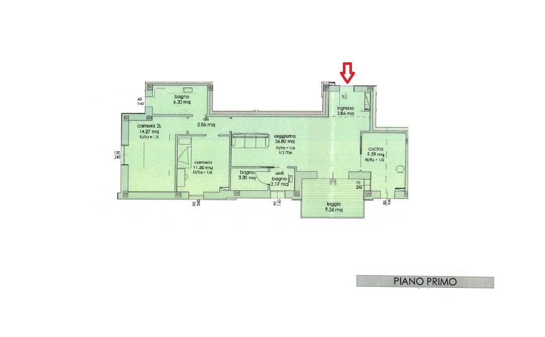 L’abitazione è composta da ingresso, spazioso soggiorno con cucina abitabile e loggia di quasi 10 mq, un bagno con anti bagno finestrato.