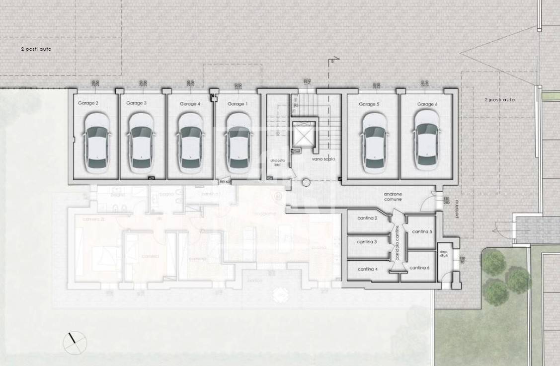 La palazzina sarà circondata da un giardino condominiale curato e protetto da un cancello carrabile elettrico.