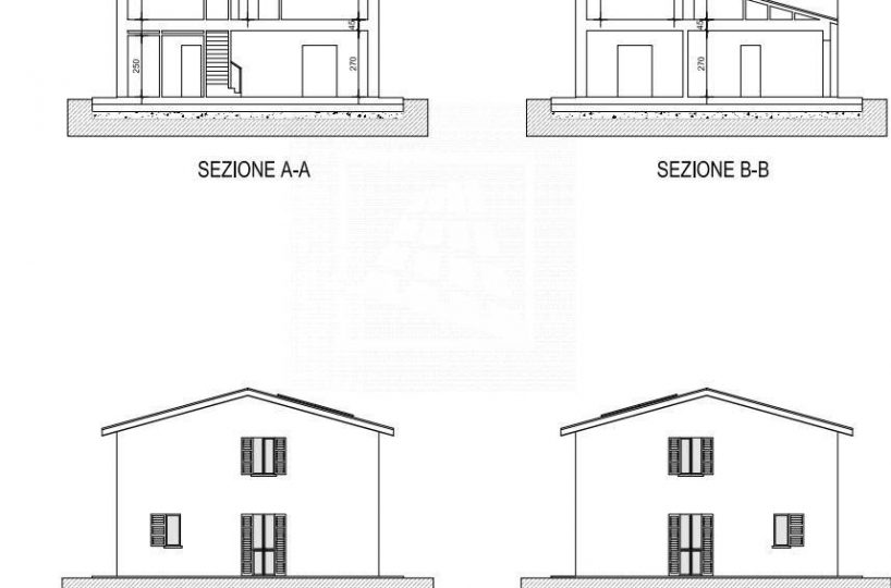 Il primo piano ospita tre camere matrimoniali, bagno e loggia.
