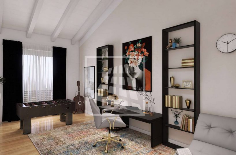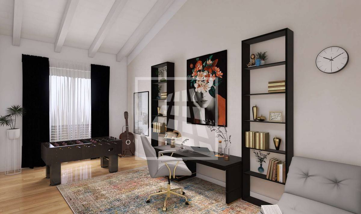 Il piano terra è dedicato alla zona giorno, un ambiente luminoso e spazioso che comprende il soggiorno con area pranzo e un angolo cottura, con la possibilità di optare per una cucina separata a seconda delle proprie esigenze.