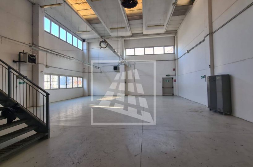 • zona produzione/magazzino di mq 224 per altezza m 6,50 con un portone carraio e una porta pedonale contrapposta, prese 220 e 380, riscaldamento e corpi illuminanti.