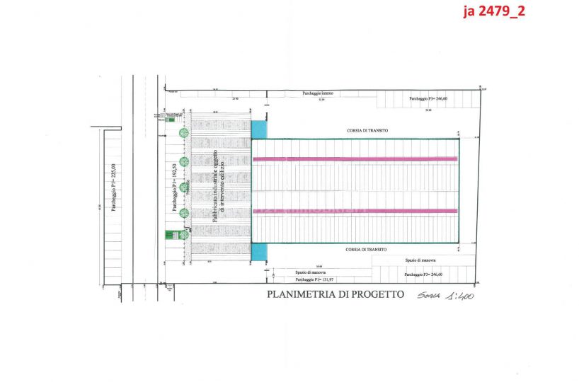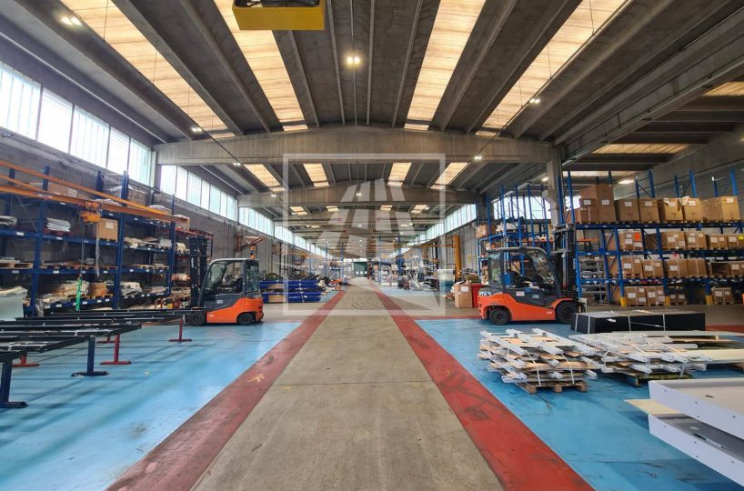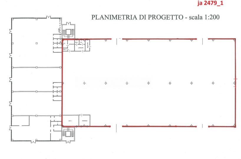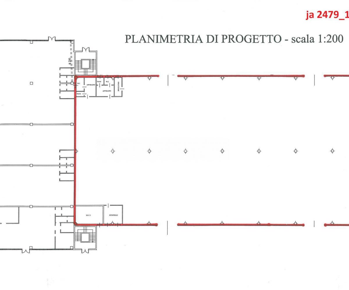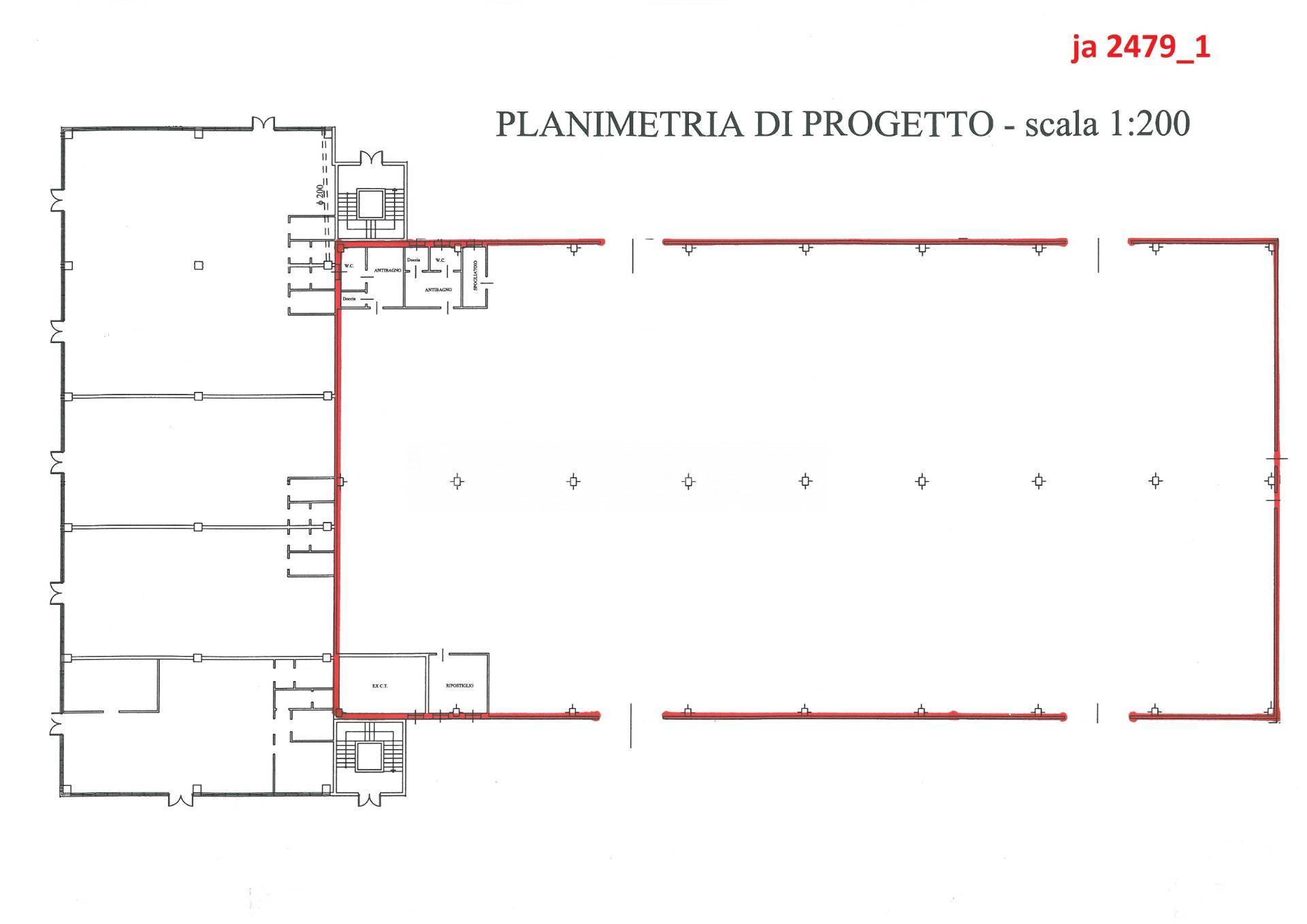 - magazzino di mq 1.850, un’altezza di m 6,50 e quattro ingressi, ognuno dotato di un ampio portone per agevolare il carico e lo scarico di materiale, è inoltre dotato di mensole carroponte.