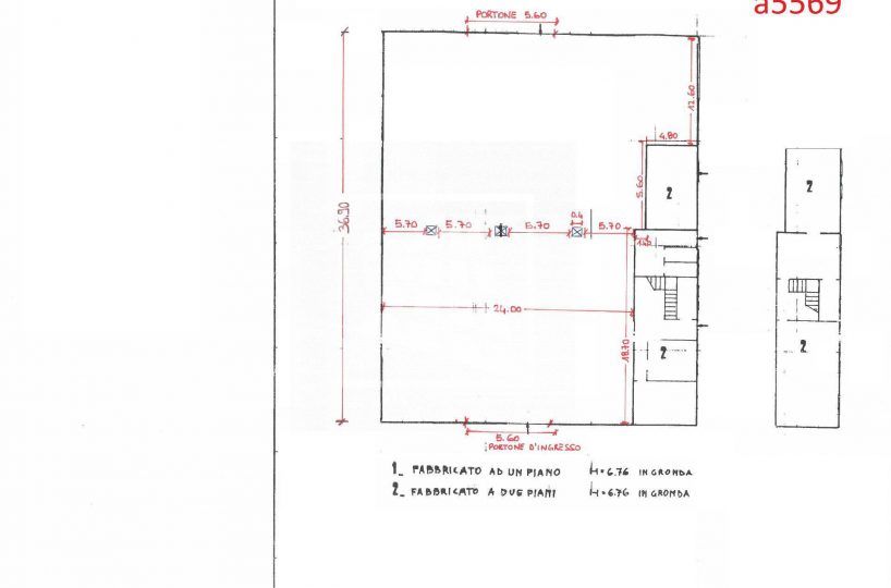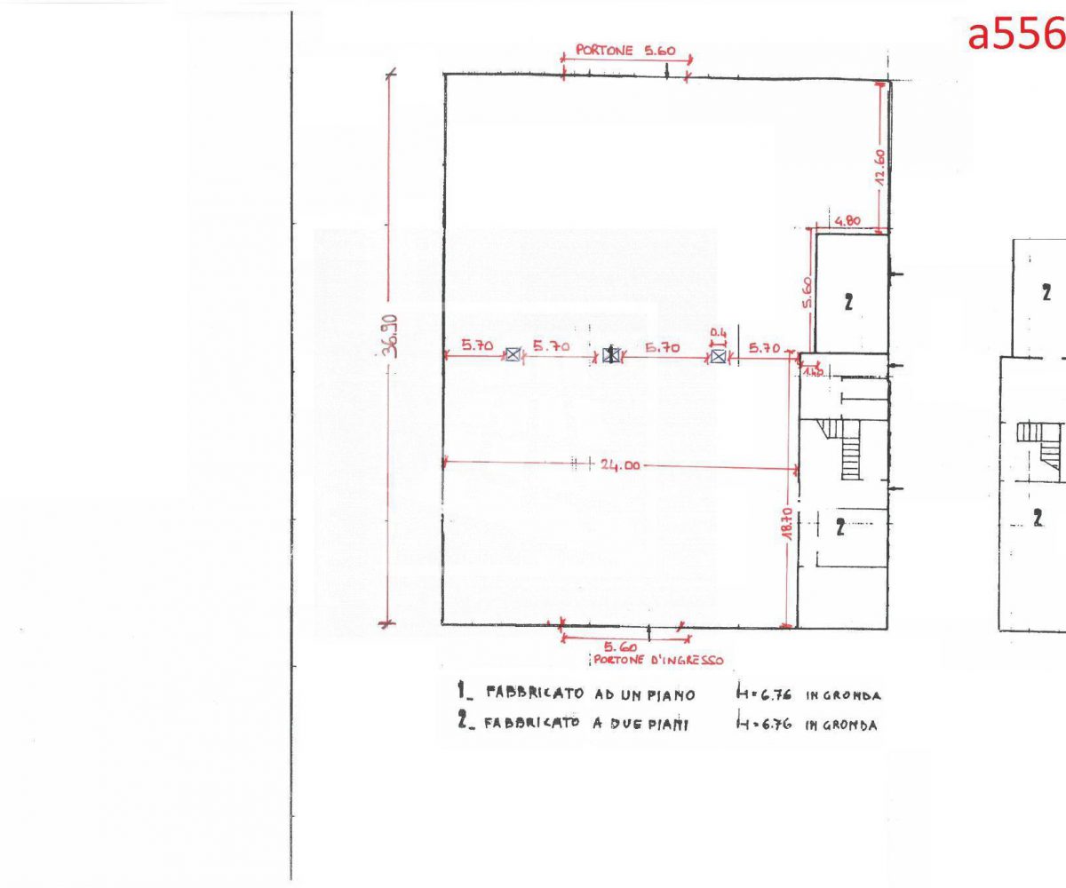 Area produttiva di mq 998 per altezza m 6,05 con due portoni contrapposti con larghezza m 5,60, prese 220 e 380.