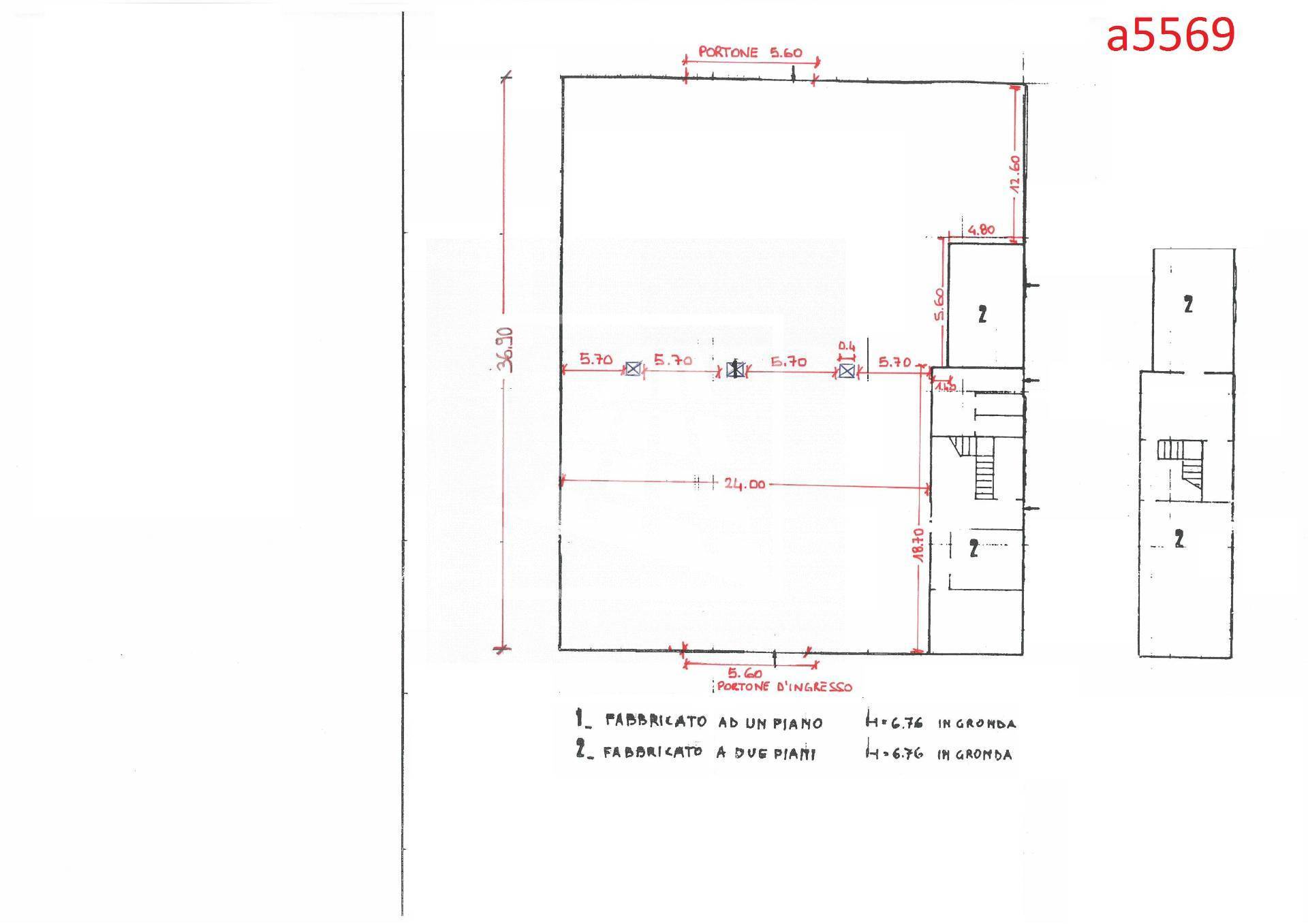 Area produttiva di mq 998 per altezza m 6,05 con due portoni contrapposti con larghezza m 5,60, prese 220 e 380.