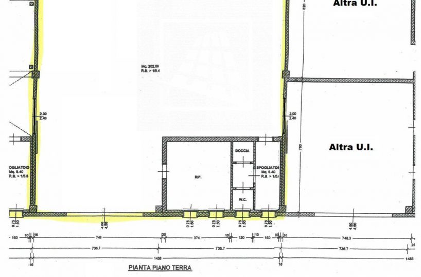 – zona amministrativa per circa mq 40 con un vano uso ufficio e spogliatoio con servizio e doccia.