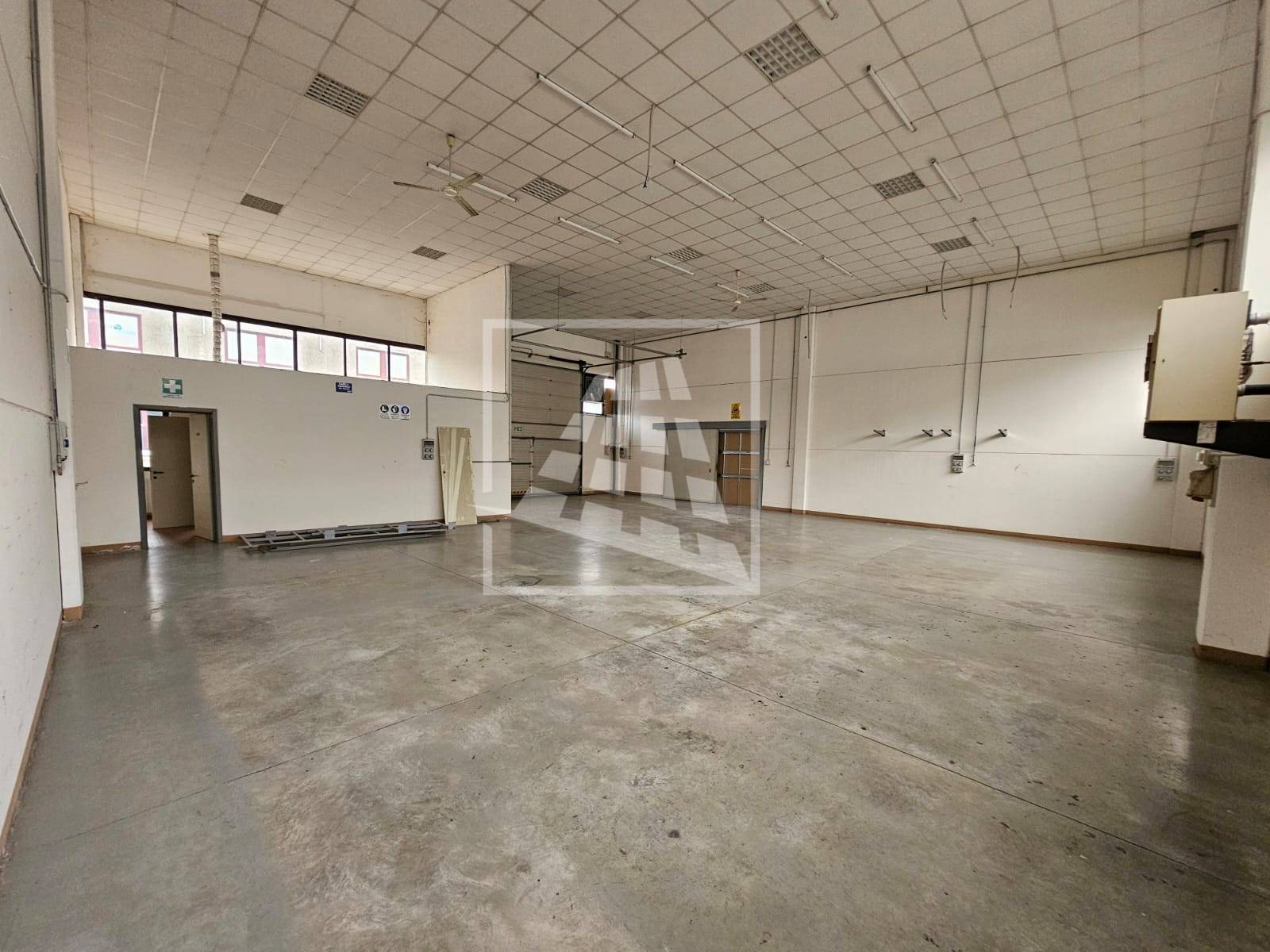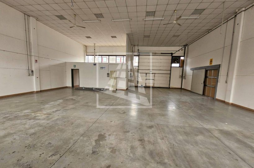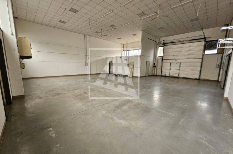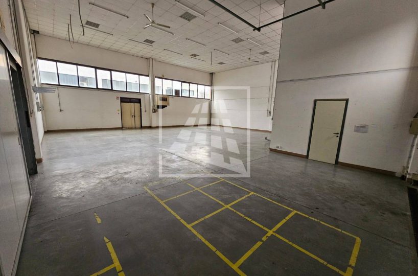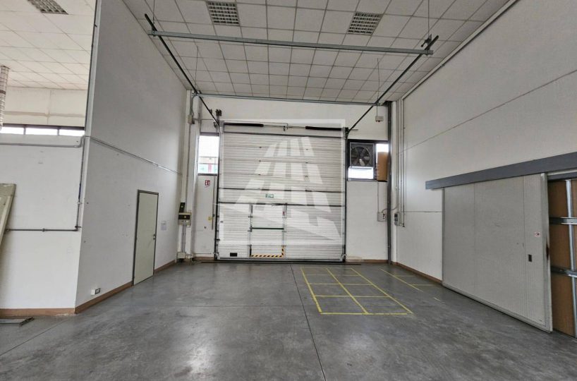 – zona magazzino/produzione con altezza sotto trave di m 6, un portone carraio di m 4,50 x 4,50, controsoffitto con corpi illuminanti, prese 220 e 380.