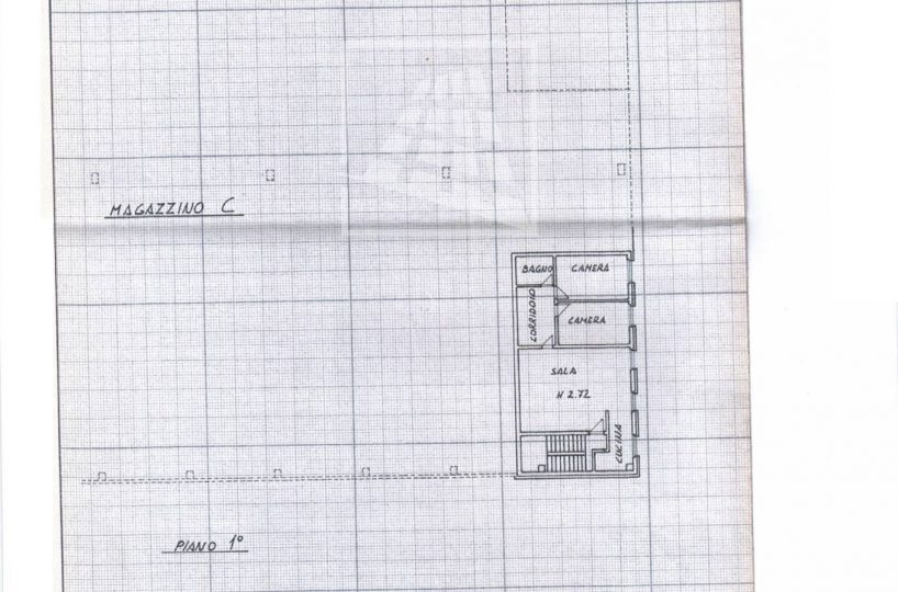 - al piano primo appartamento di mq 130 con ingresso indipendente e scala ad uso esclusivo, soggiorno, angolo cucina, disimpegno, due camere e un bagno.
