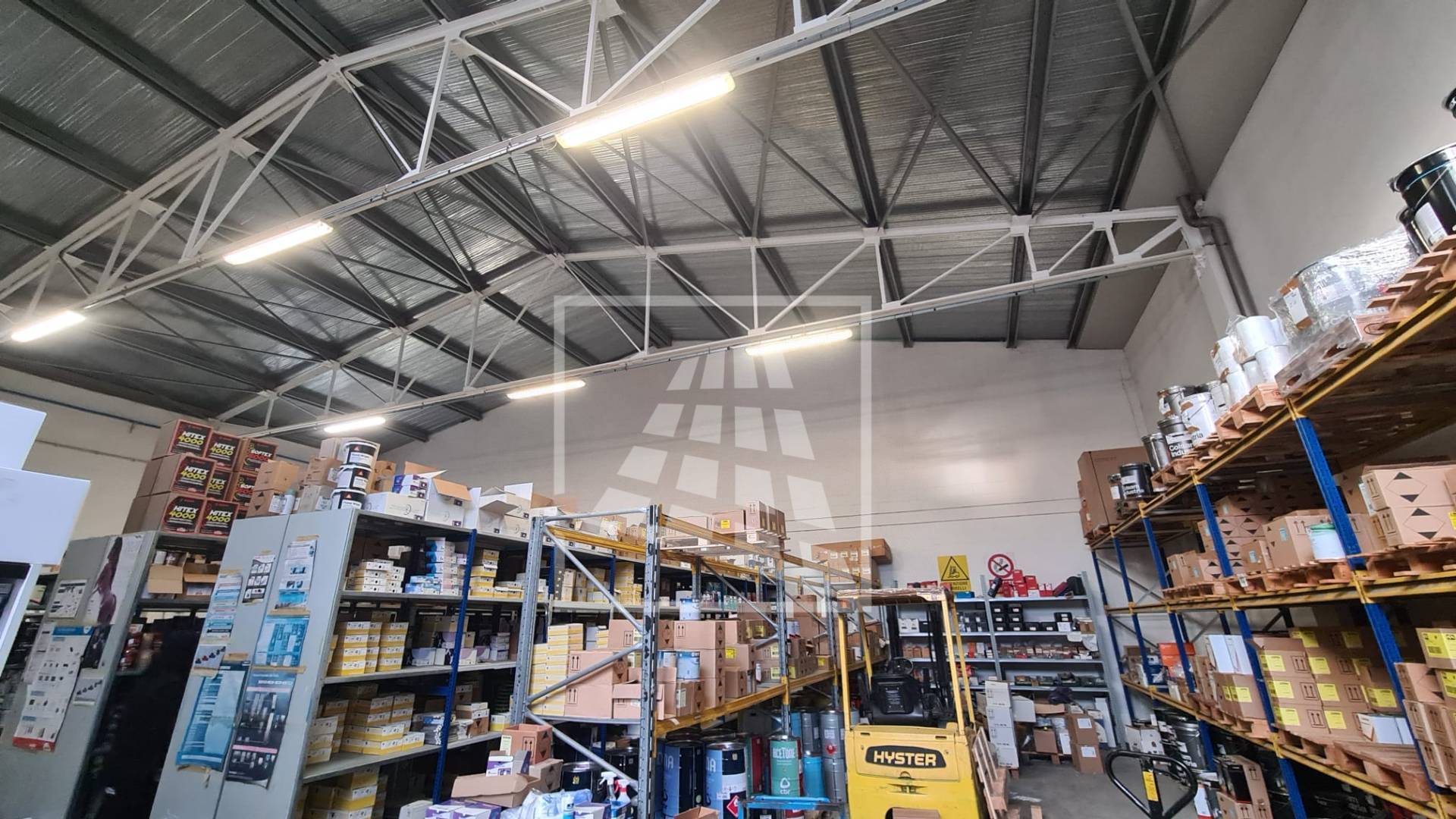L’altezza sotto trave di 6 metri consente un ampio spazio per la movimentazione di merci.