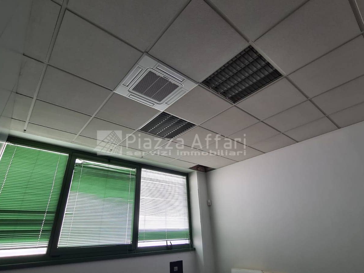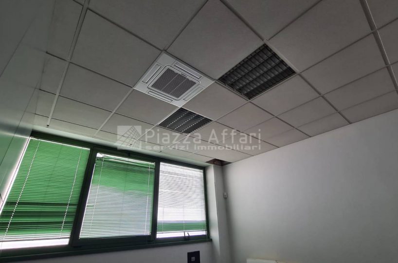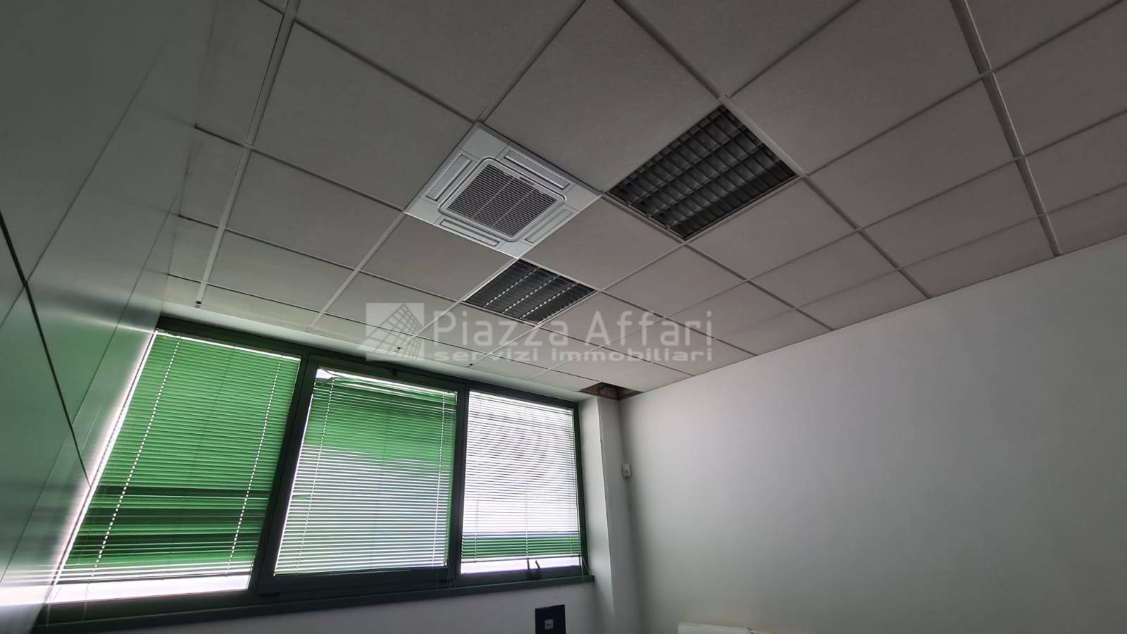 Controsoffitti con corpi illuminanti, tende veneziane, rete dati e impianto antifurto.