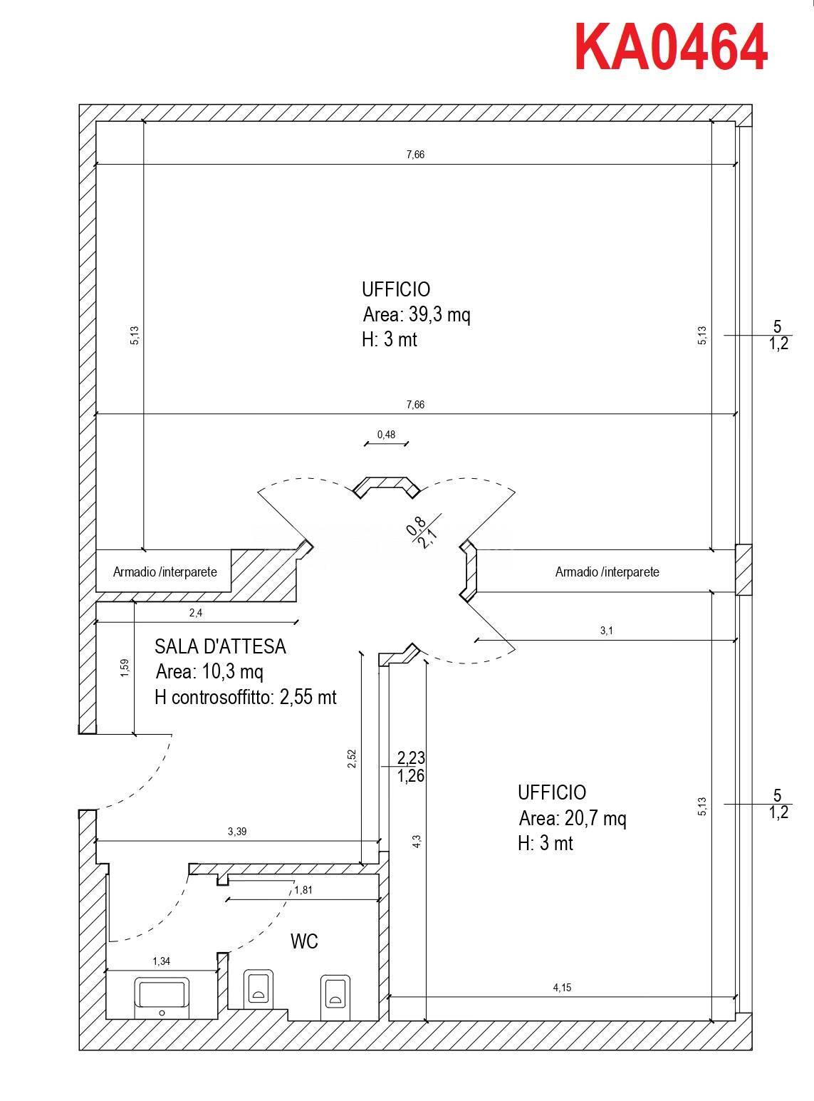 Reggio nord – Ufficio (Rif. KA0464) Ufficio in contesto direzionale posto al secondo piano servito da ascensore, si sviluppa su una superficie totale di 90 mq suddivisi in tre vani con antibagno e bagno.