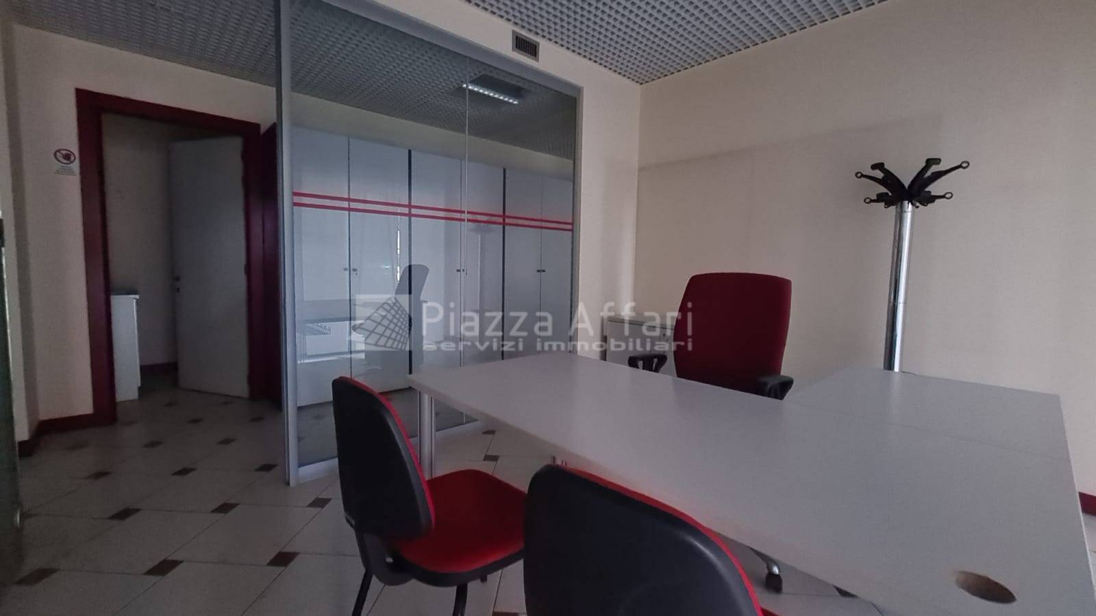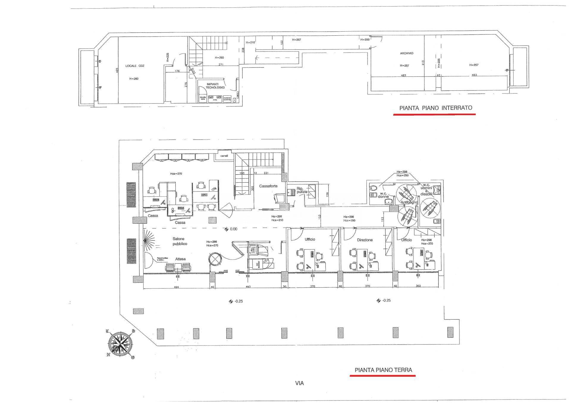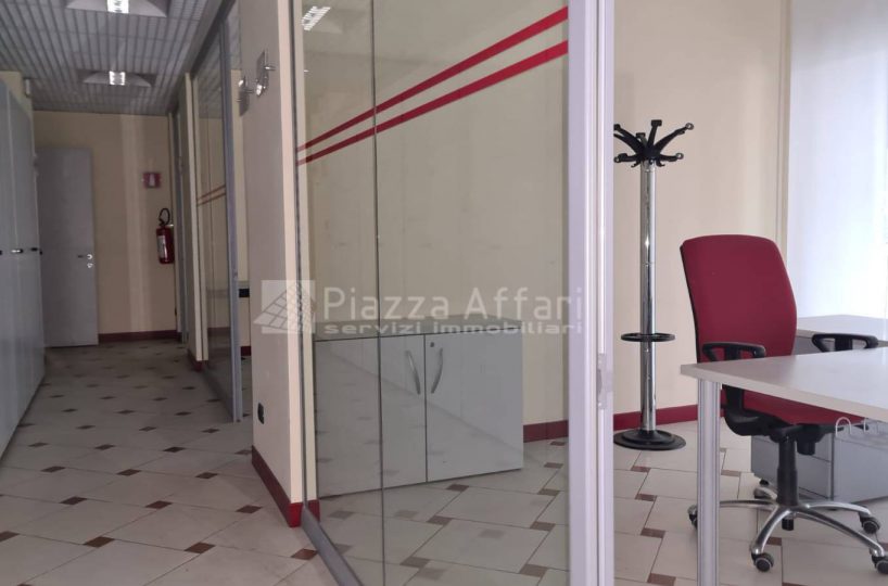 – al piano terra negozio/ufficio di mq 170 con cinque vetrine diviso in vani tramite pareti e pannelli di vetro munito di doppi servizi di cui uno per diversamente abili;