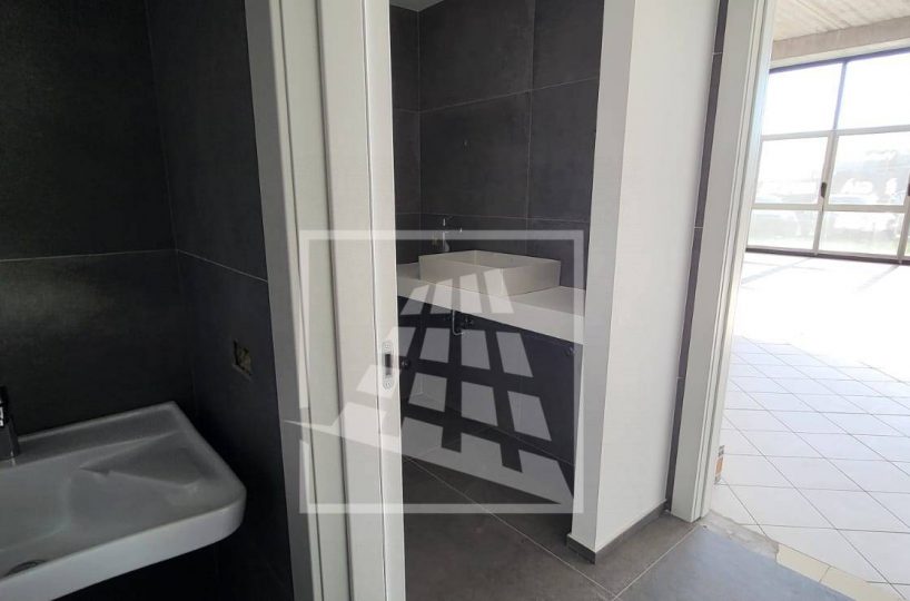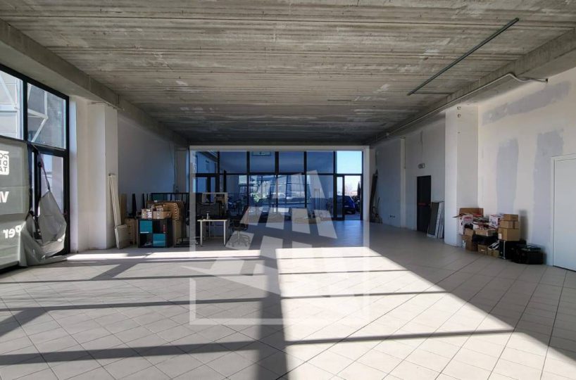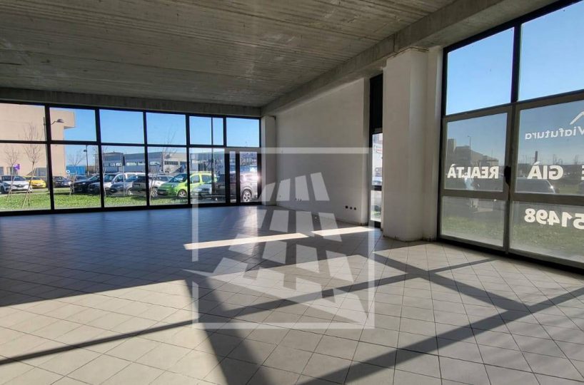 Vi sono quattro ingressi indipendenti, due vetrate a tutta altezza sui due lati più stretti contrapposti e una terza parete vetrata su una parte del lato più lungo che rendono l’ambiente molto luminoso.