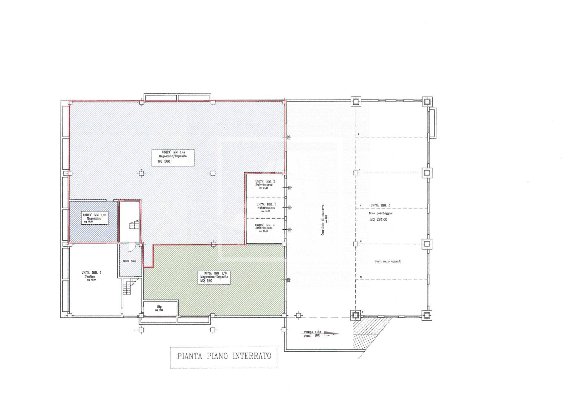 Reggio Nord – Magazzino/Deposito (Rif. KV0102/2A) al piano interrato per una superficie totale di mq 538 con un’altezza di m 2,50.