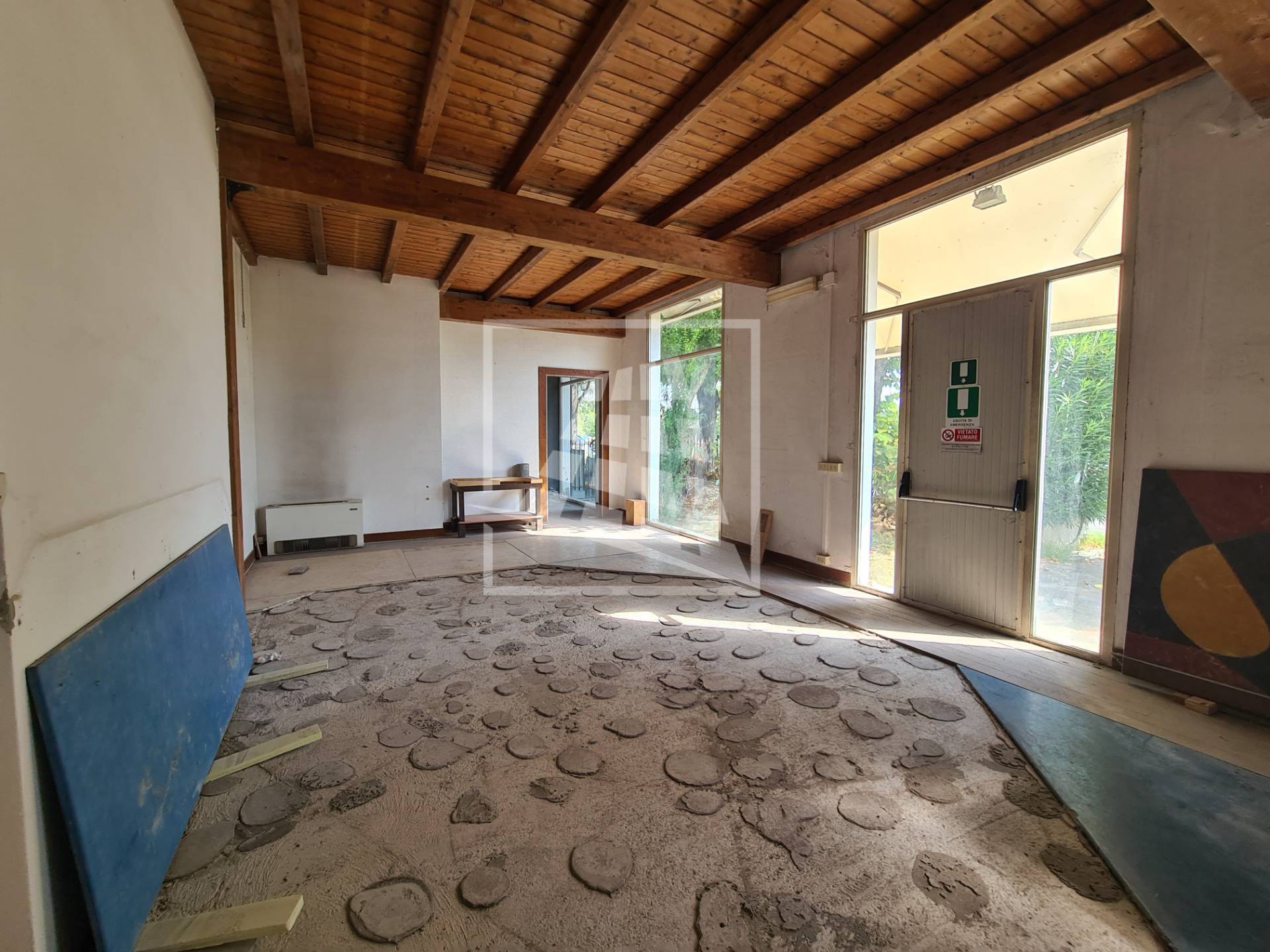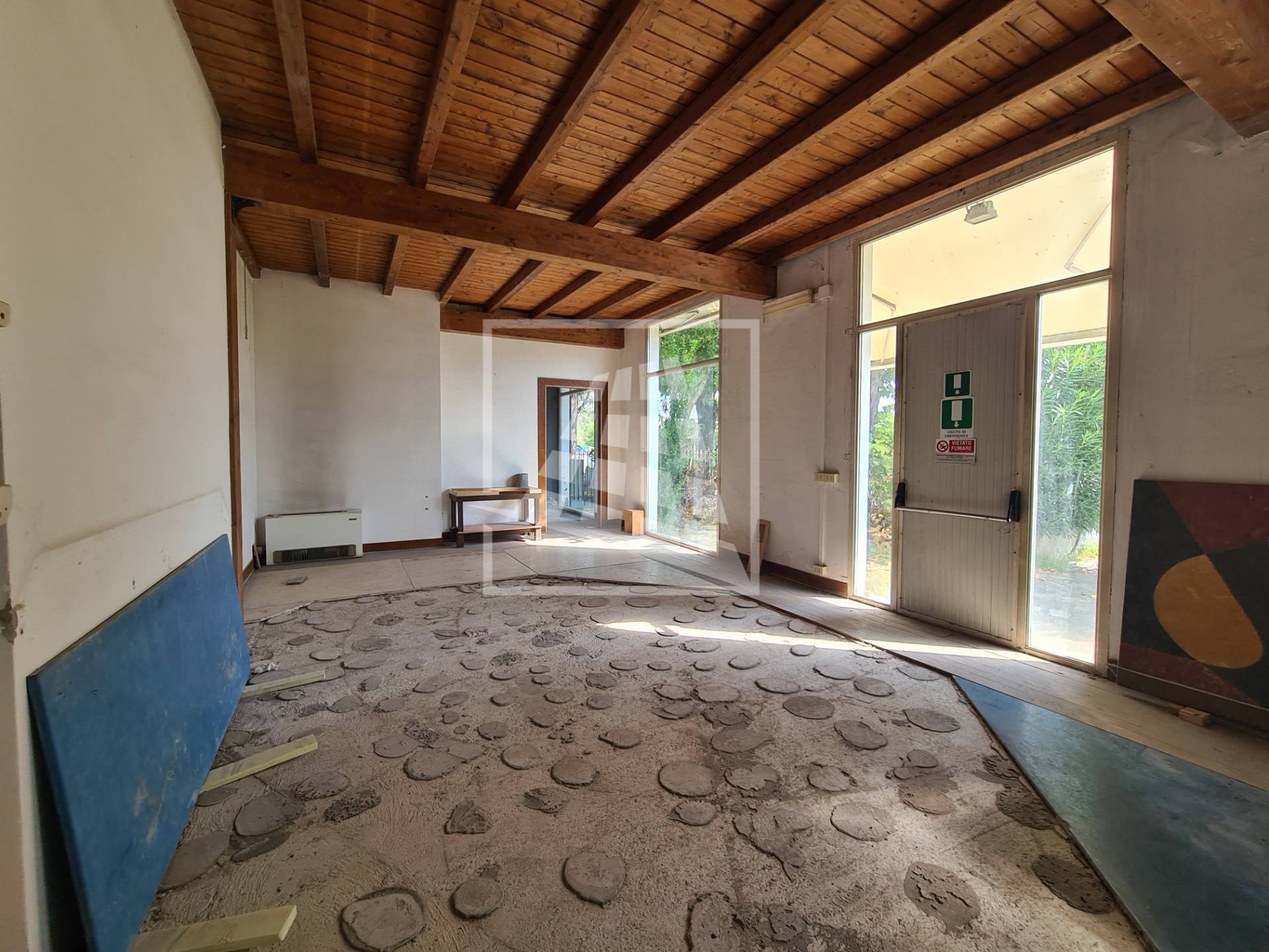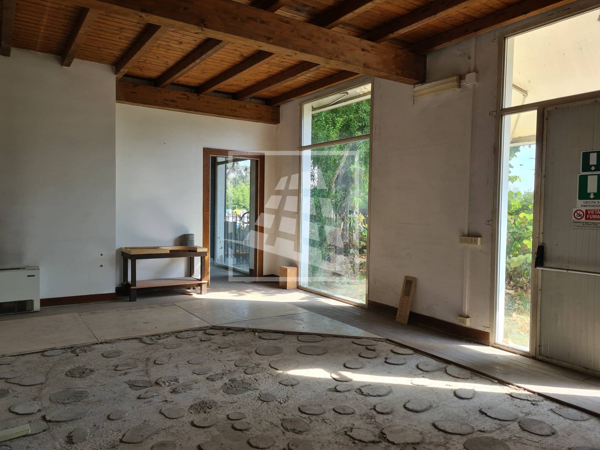 L’immobile dispone di un accesso carraio, quattro vetrine, un’area cortiliva di mq 310. Indispensabili alcuni lavori di manutenzione straordinaria,