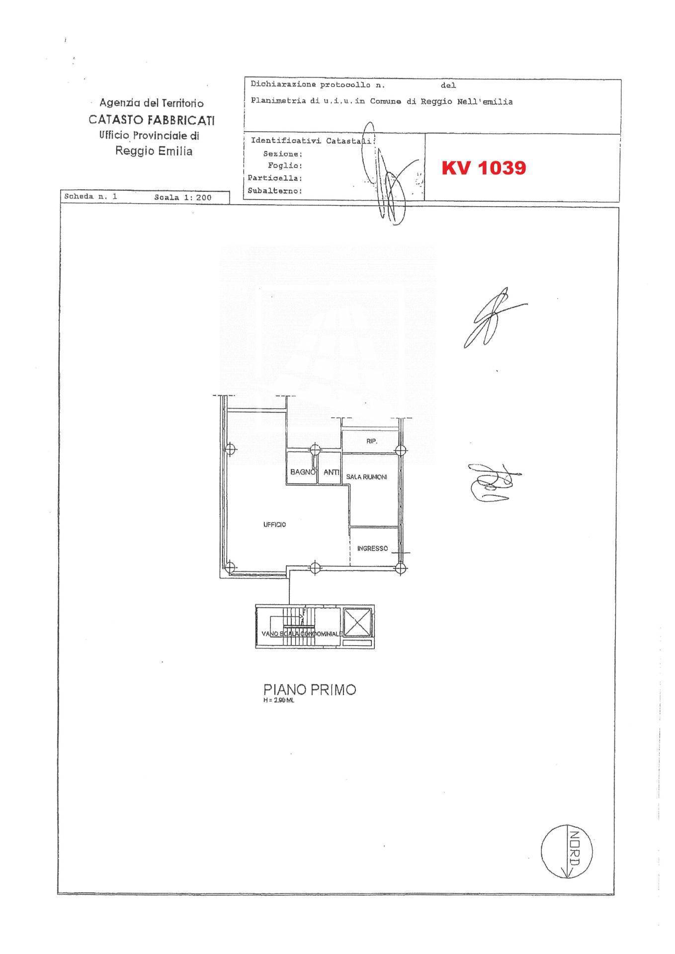 Reggio nord – Ufficio (Rif. KV1039) Situato al primo piano servito da ascensore, in un moderno complesso, Ufficio di mq 127 composto da ingresso, ampio open space, sala riunioni, ripostiglio e servizio con antibagno.