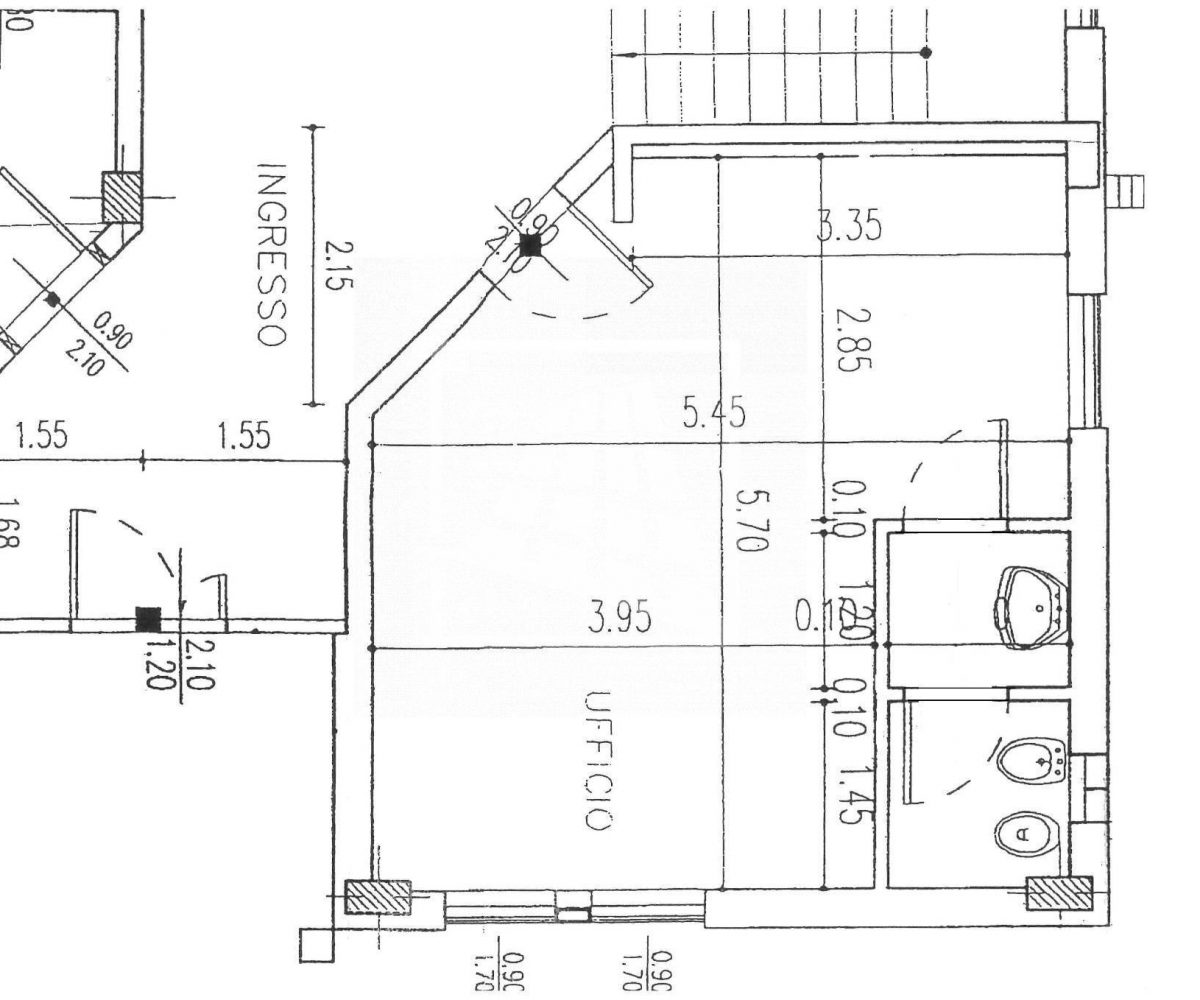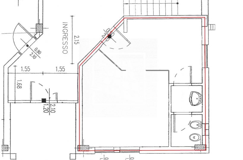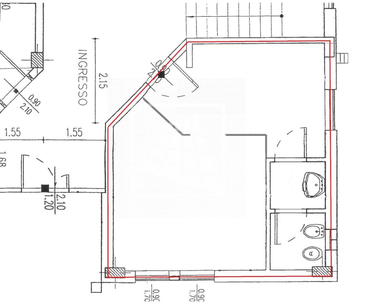 L’immobile, con una superficie totale di 35 mq, è composto da due locali separati da muri, e un servizio con antibagno.