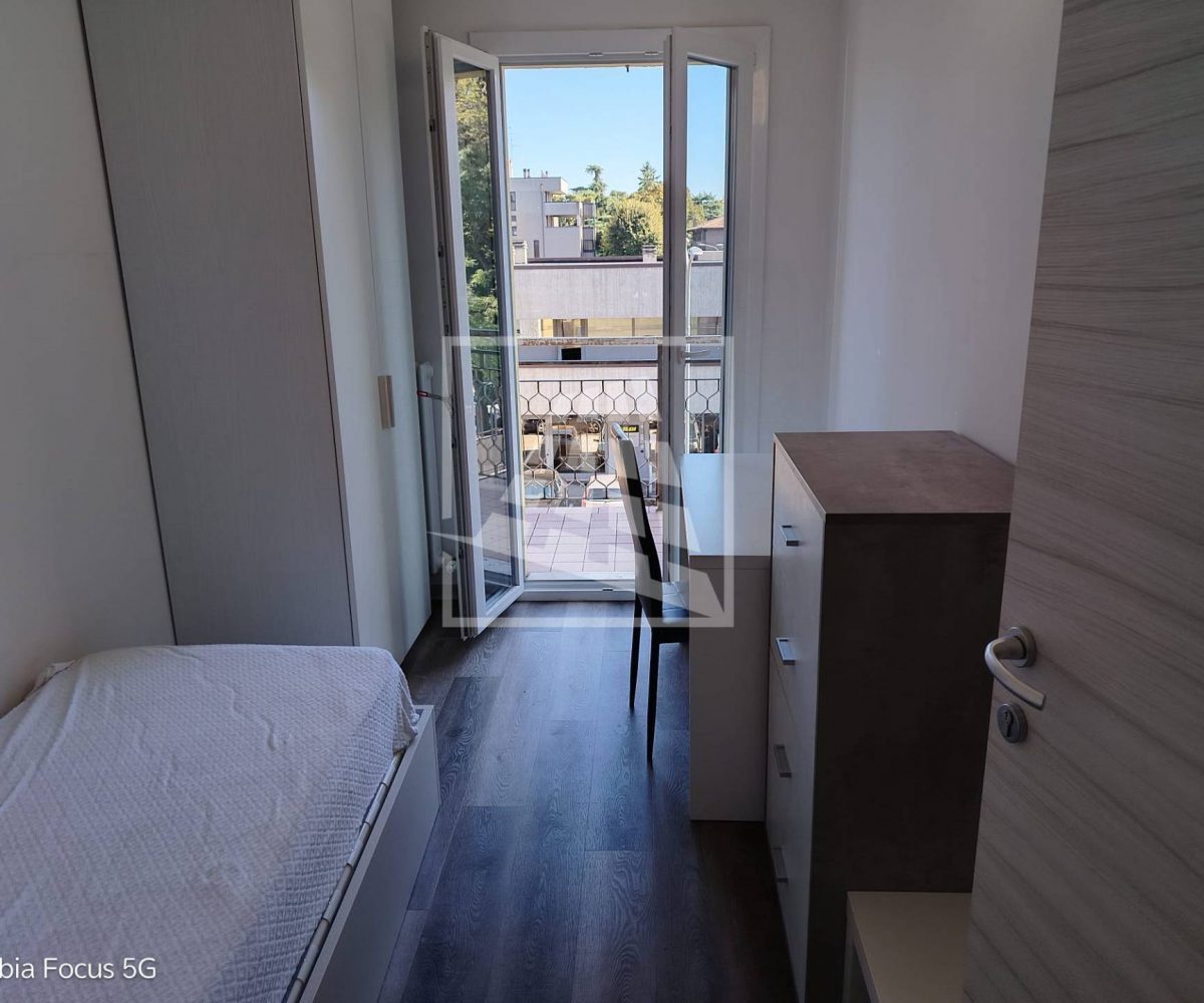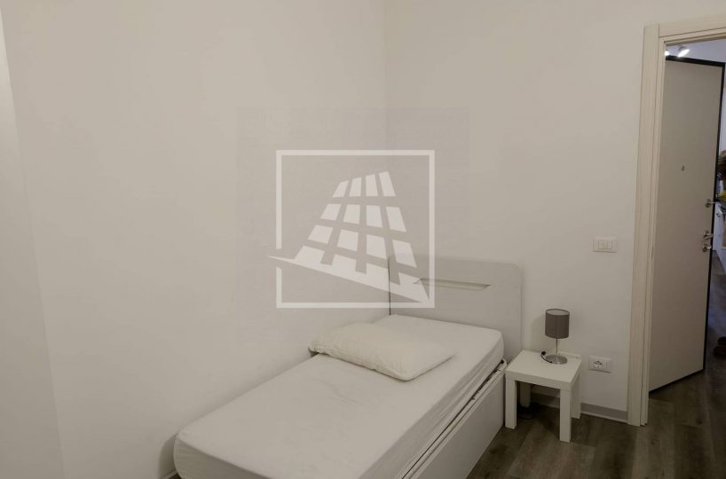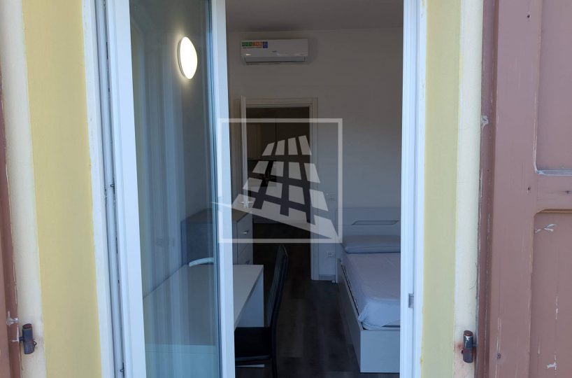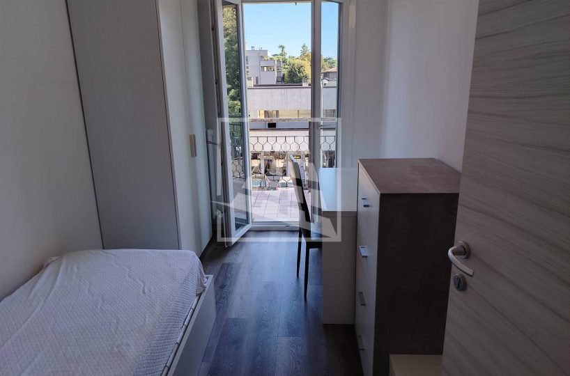 La stanza concessa in locazione è di circa 10 mq ed è dotata di un letto singolo, armadio, cassettiera, scrivania, aria condizionata e portafinestra con accesso al balcone.
