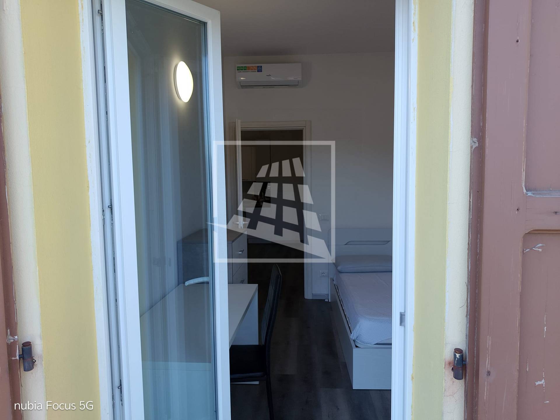 La stanza concessa in locazione è di circa 10 mq ed è dotata di un letto singolo, armadio, cassettiera, scrivania, aria condizionata e portafinestra con accesso al balcone.
