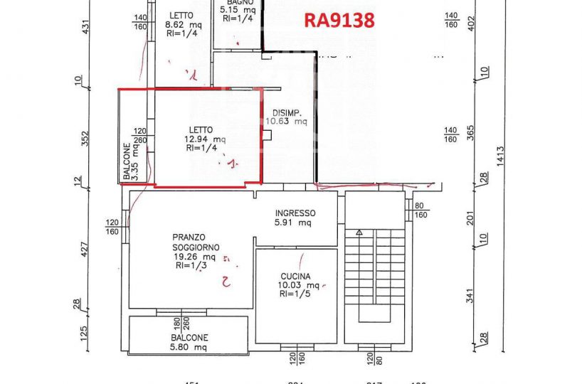 L’appartamento è composto da ingresso/corridoio, cucina abitabile comune completamente nuova, soggiorno separato comune con balcone, una camere da letto matrimoniale con balcone privato, bagno comune con finestra e un ulteriore camera singola.