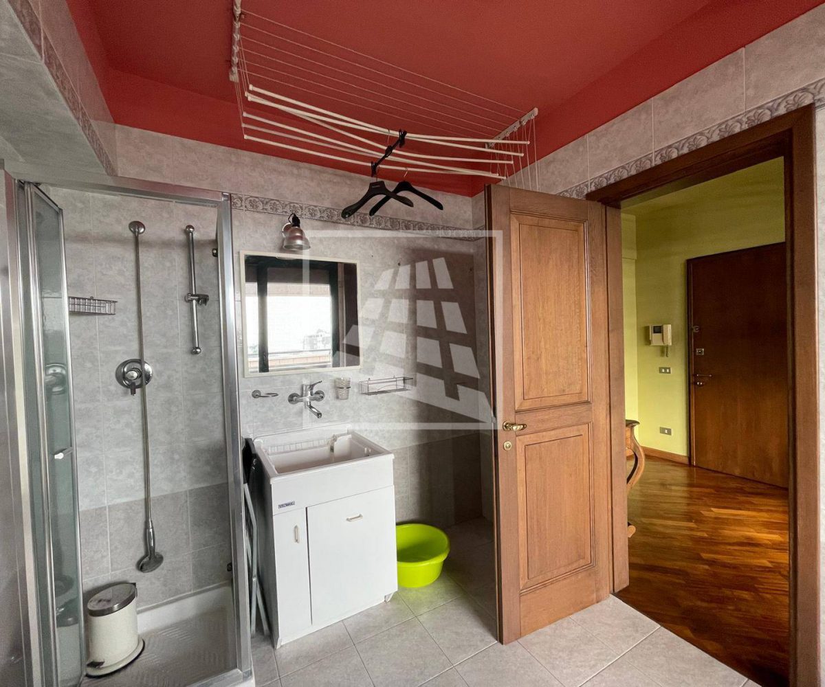 Appartamento al settimo piano, servito da ascensore, di 128 mq cosi’ composto: ingresso sulla zona giorno con ampio terrazzo per momenti piacevoli all’aria aperta ,cucina abitabile , due camere da letto e due bagni finestrati (uno con doccia e uno con vasca da bagno e doccia).