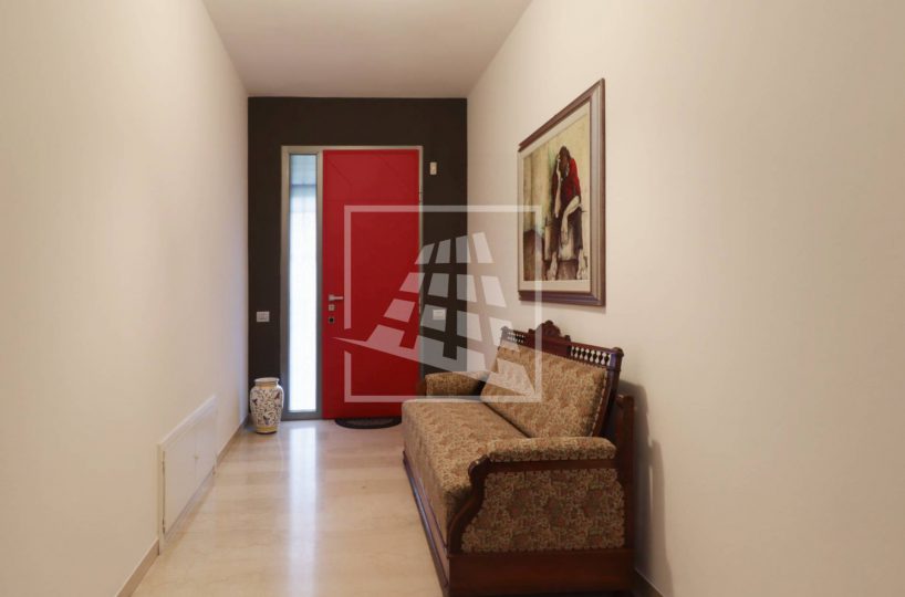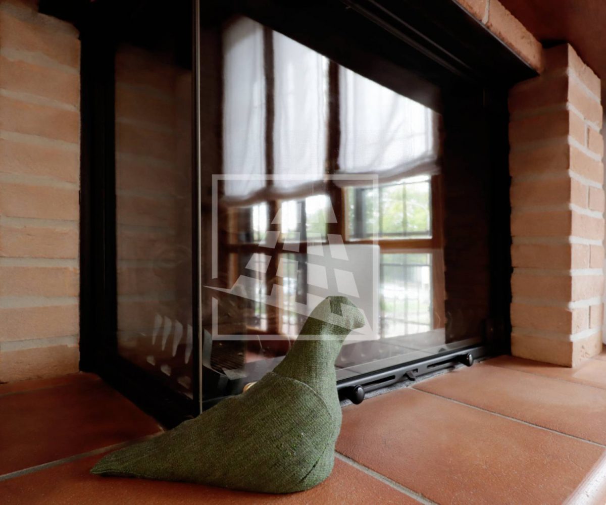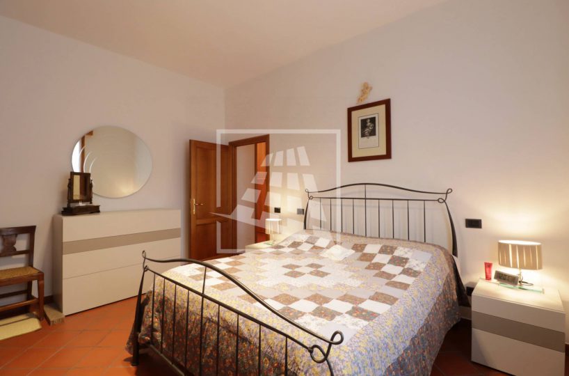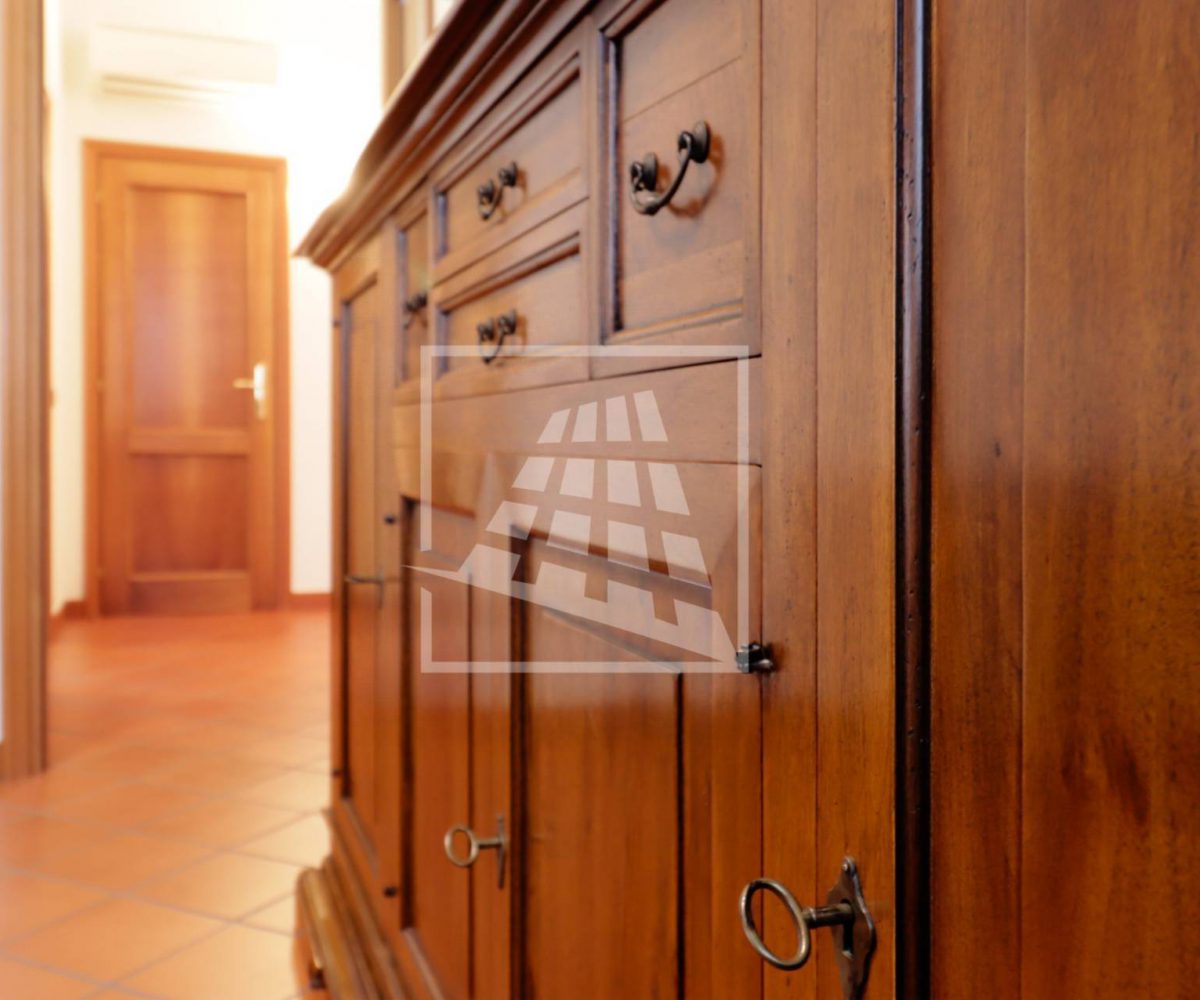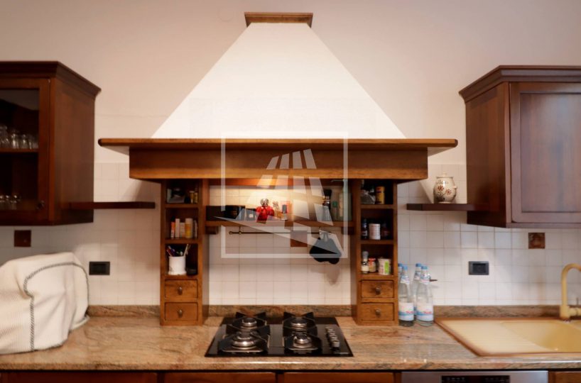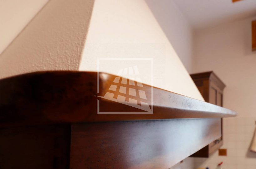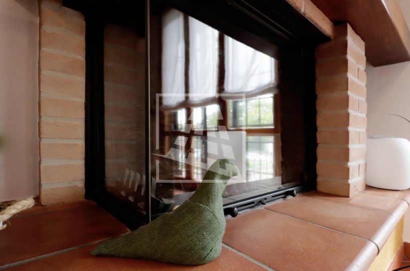Al piano superiore si sviluppa l’abitazione principale, caratterizzata da ambienti spaziosi e ben distribuiti: l’ingresso conduce a un ampio soggiorno con camino, una spaziosa cucina abitabile, due camere da letto, uno studio, un bagno dalle generose dimensioni e una pratica lavanderia.