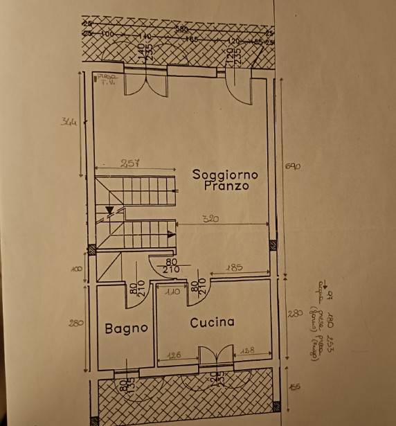 Al piano terra, ingresso con giardinetto di 30 mq sul fronte, ampio soggiorno, cucina abitabile, bagno finestrato ed altra porzione di giardino sul retro di 30mq,
