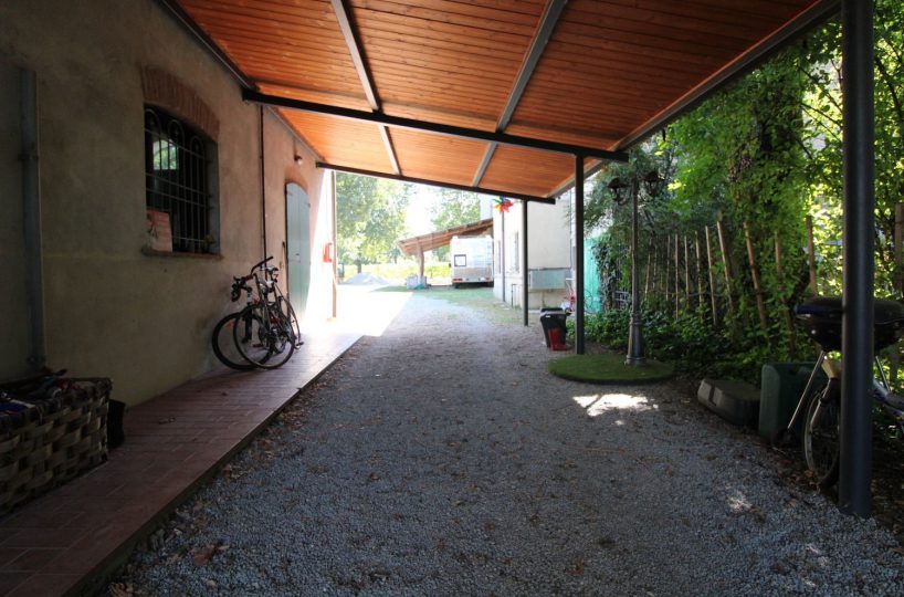 La proprietà comprende un grande rustico reggiano con tipica ”porta morta” in parte adibito a residenza, con 2 unità abitative, ed in parte rurale con stalla e fienile dove è possibile realizzare un agriturismo ed un Bed & Breakfast).