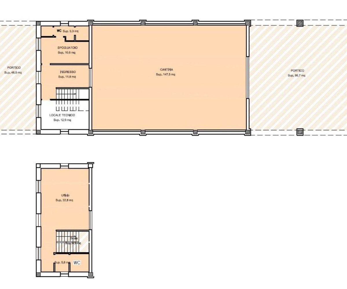 Inoltre, posto sul retro del rustico, fa sempre parte del podere un immobile di recente costruzione (edificato nel 2006) composto da un’abitazione su due livelli e da un ampio magazzino coibentato e completo di impianto di raffrescamento.