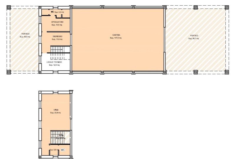 Dei terreni, 37.600 mq sono coltivati a vigneto con impianto di irrigazione automatico a goccia, in parte affittati con scadenza a fine 2025.